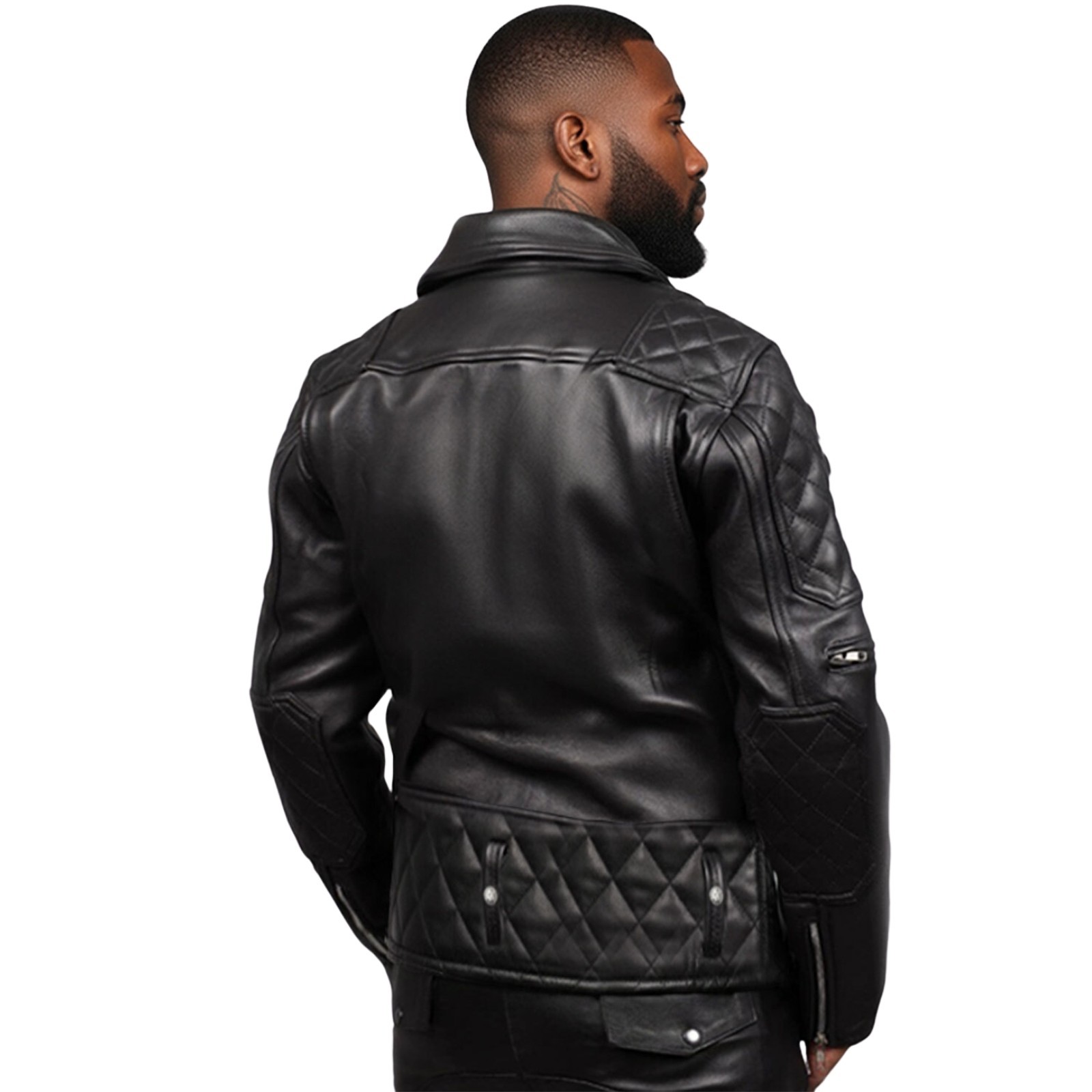 Men's Motorcycle Leather jacket Genuine Cowhide Brando Style Black Biker Jacket