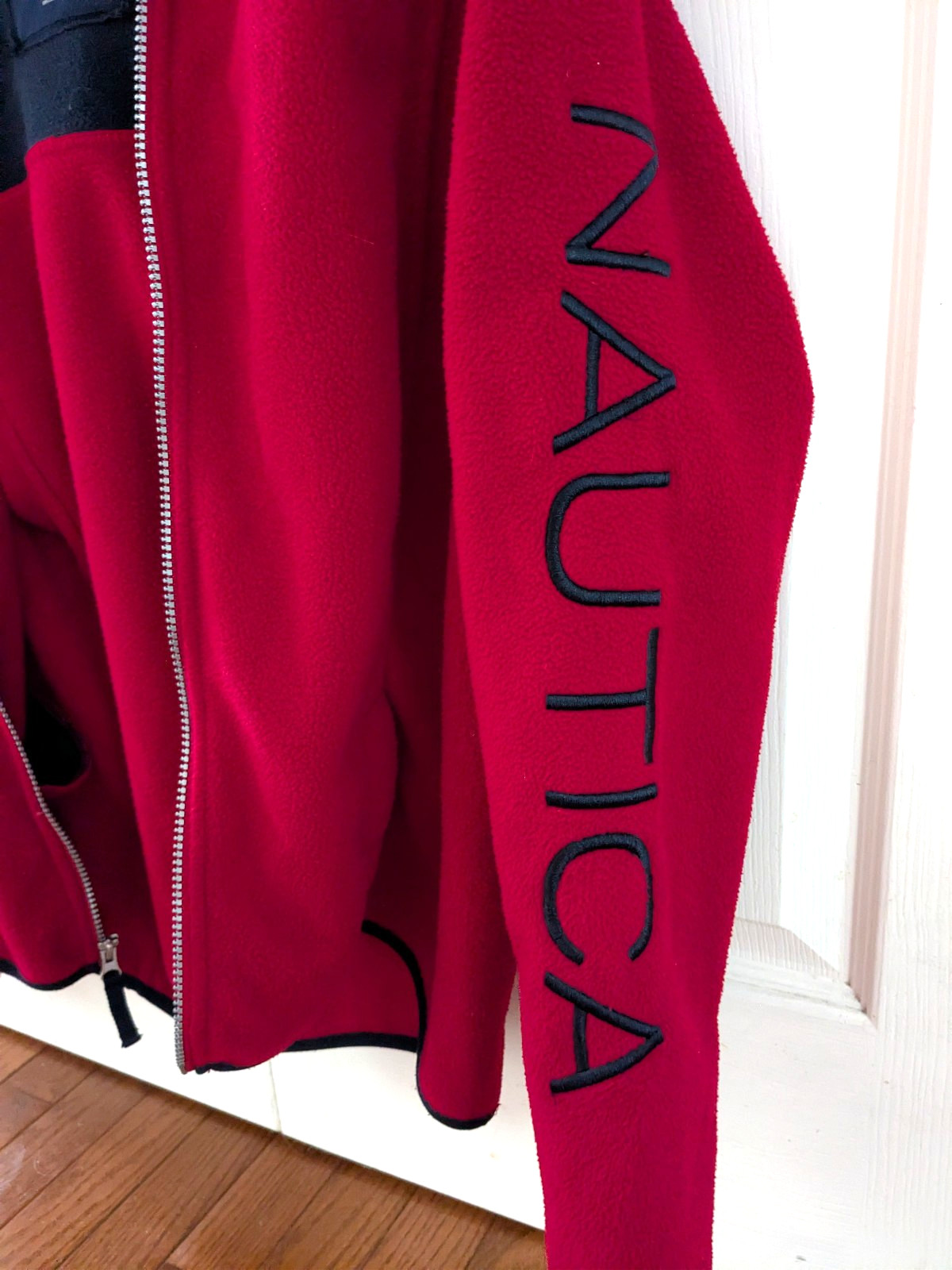 Boys Nautica Lightweight Red Navy Fleece Zip Jacket Red Size X-Large 12-14