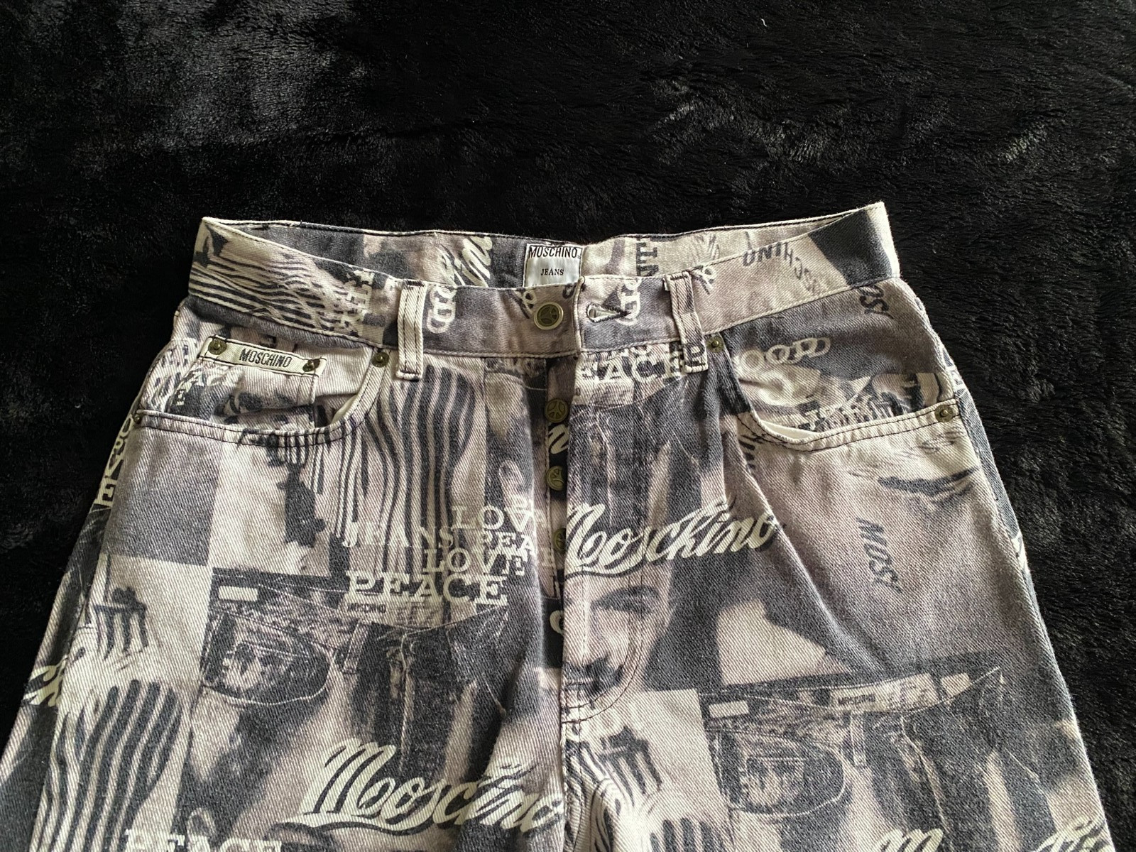 Vintage, Moschino men's jeans, b w retail pattern, marked size 32