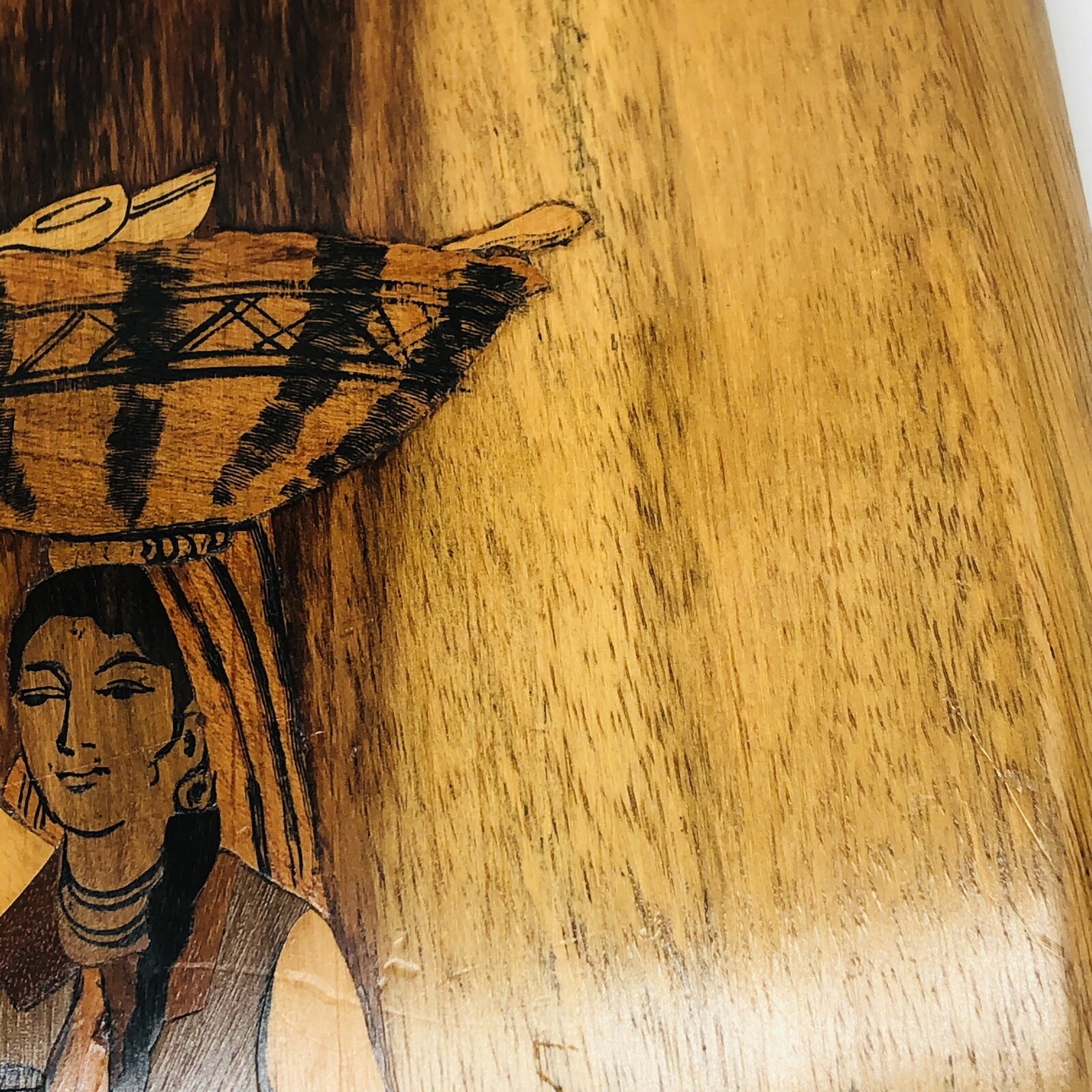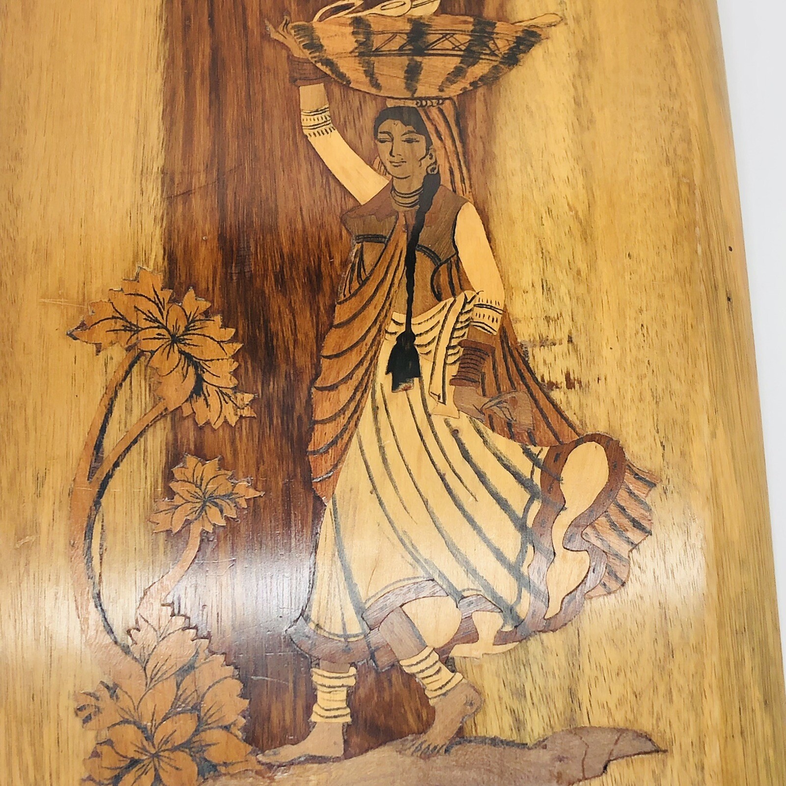 Vintage Inlaid Wooden Wall Art India Women Basket 2 Tone Wood