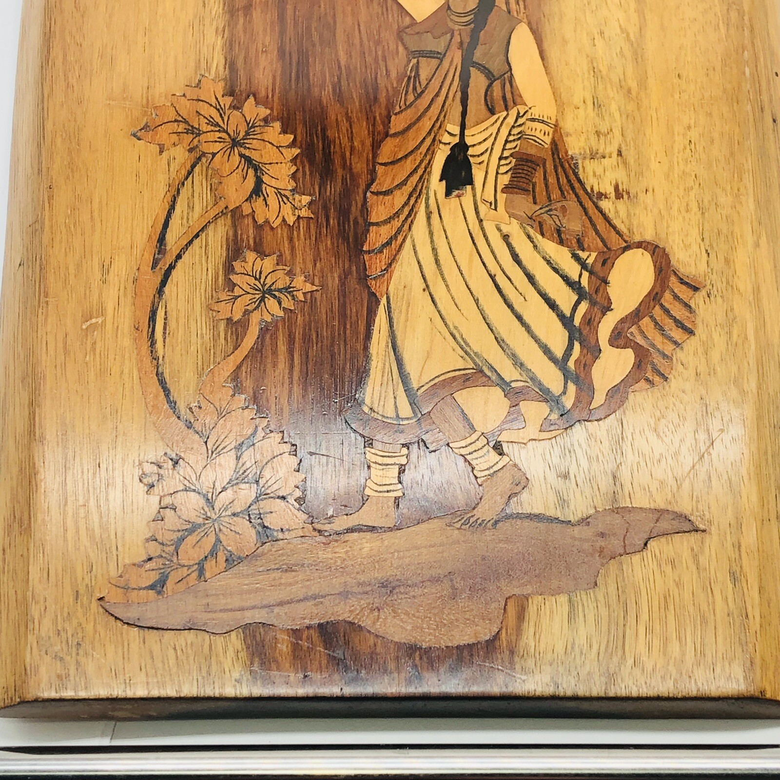 как выглядит Vintage Inlaid Wooden Wall Art India Women Basket 2 Tone Wood фото