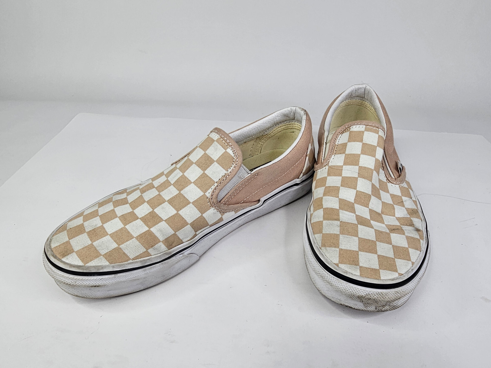 VANS CLASSIC Slip-on SHOES Beige Whie Checkerboard UNISEX M6 W7.5