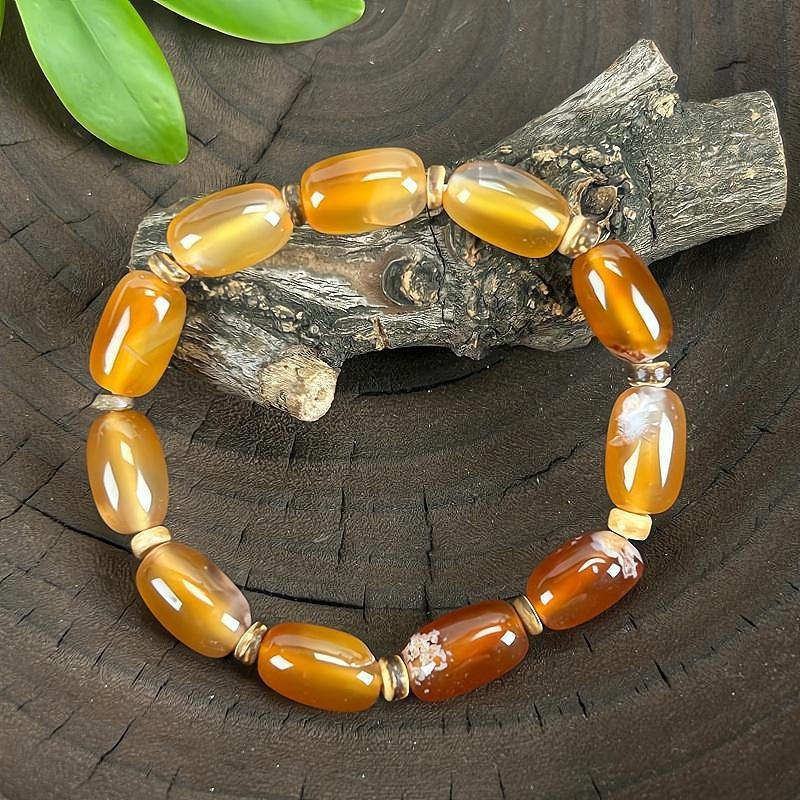• Christmas Gift Natural Agate Roung Bead Bracelet/Genuine Gemstone Bracelet