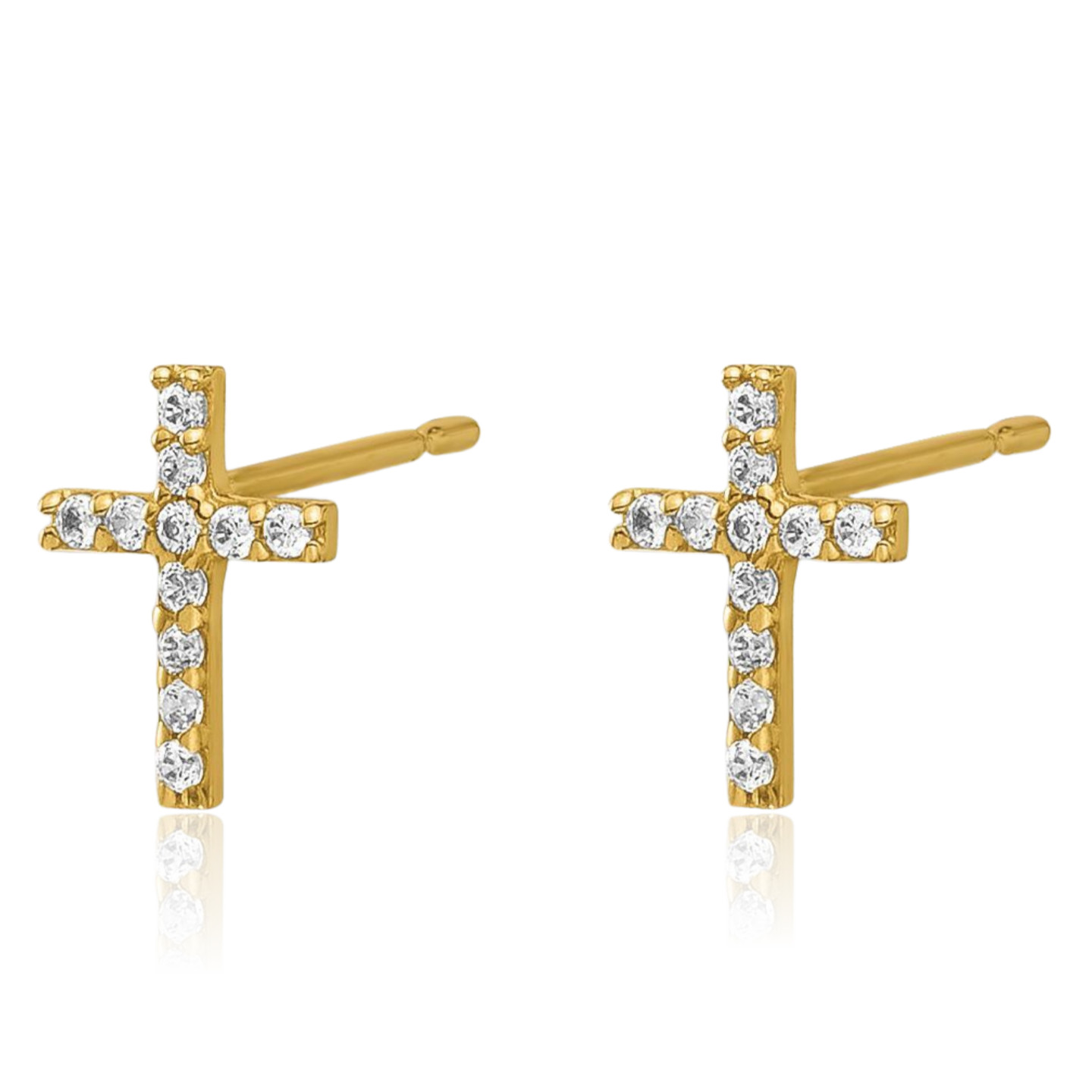 14K Solid Yellow Gold CZ Cross Dangle Stud Earrings