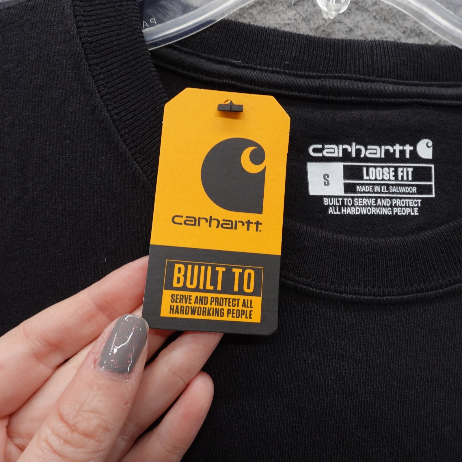 как выглядит Carhartt Mens Small Black Heavyweight Long Sleeve Pocket T Shirt Loose Fit NEW фото