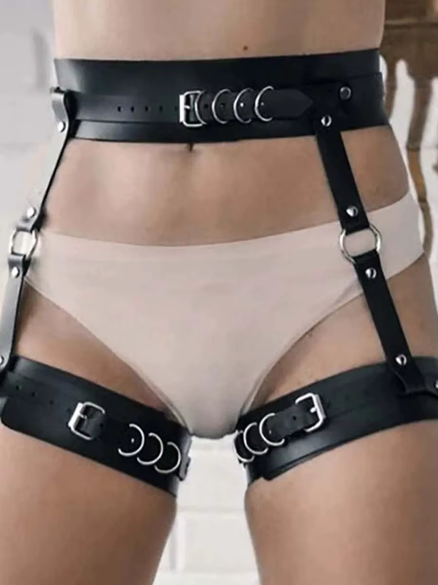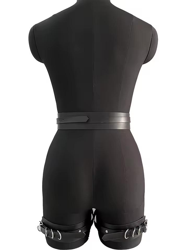 Edgy Punk Gothic PU Leather Waist-Leg Belt Caged Garter with Adjustable Straps
