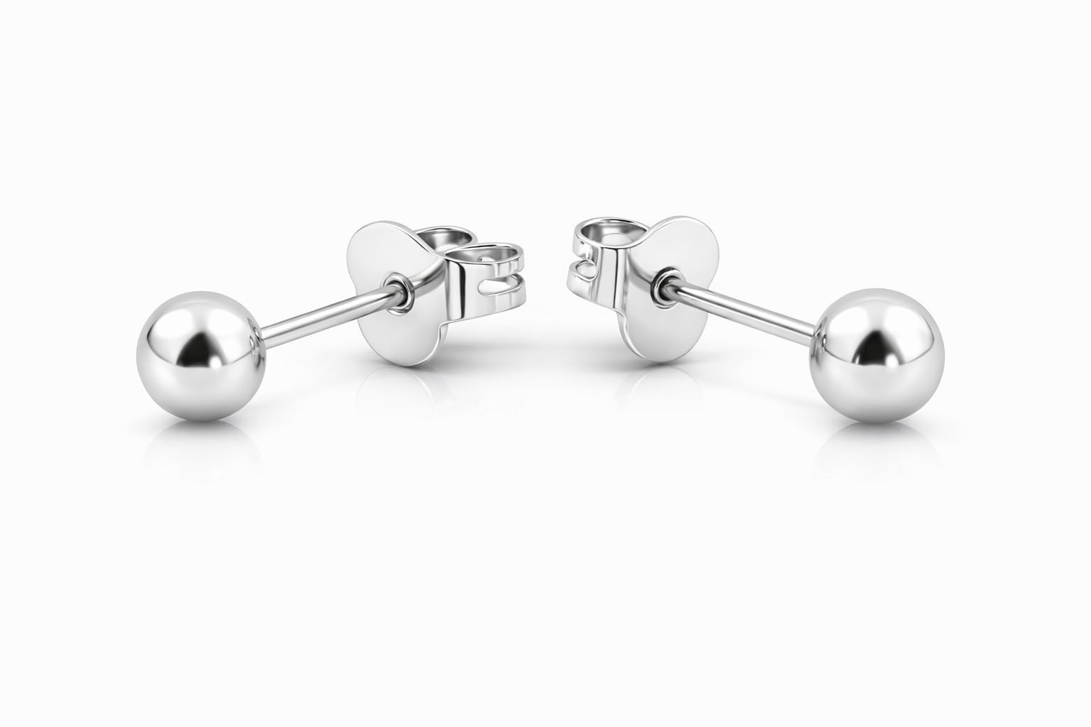 BALL SM STUD EARRINGS 14K WHITE GOLD - Made in USA - NEW WITH TAG