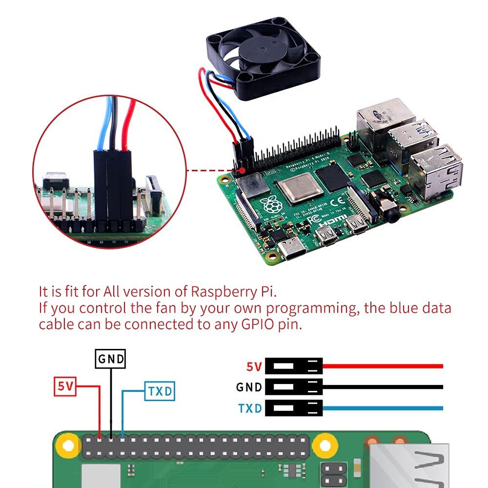 как выглядит 2PCS High Airflow 5V PWM Fans - Quiet 40x40mm for Raspberry Pi 4, 3 More фото