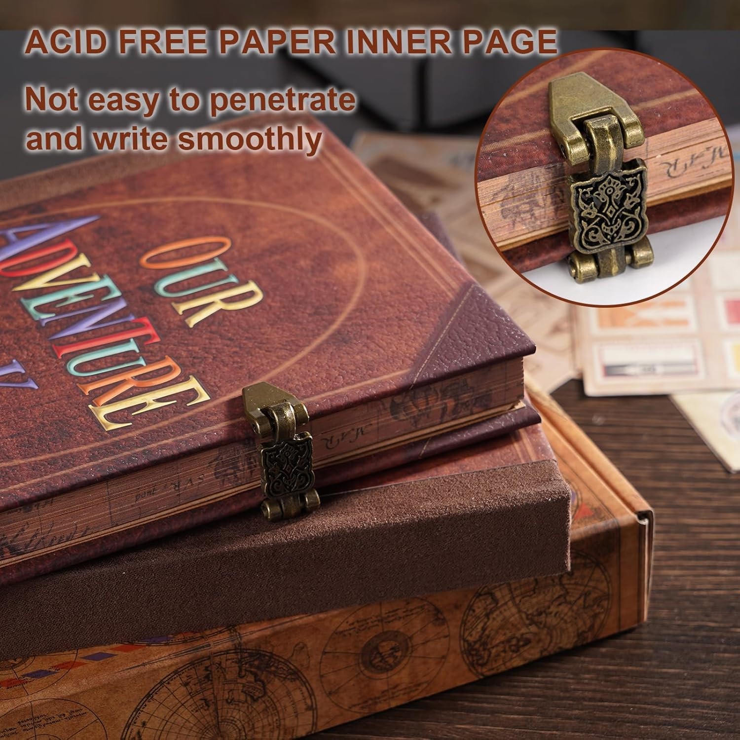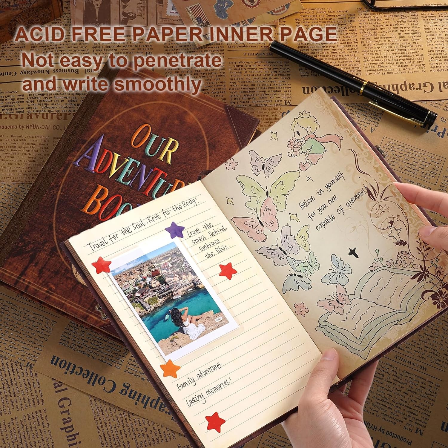 Our Adventure Book Scrapbook Album, 8.2 5.9 inch, With Retro Cowhide Cover