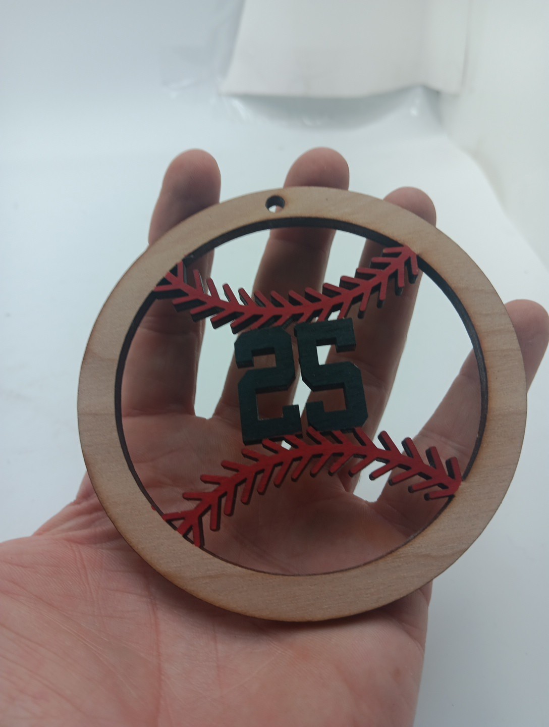 Number 25 Baseball Christmas Round Ornament Wood Cutout Print 4