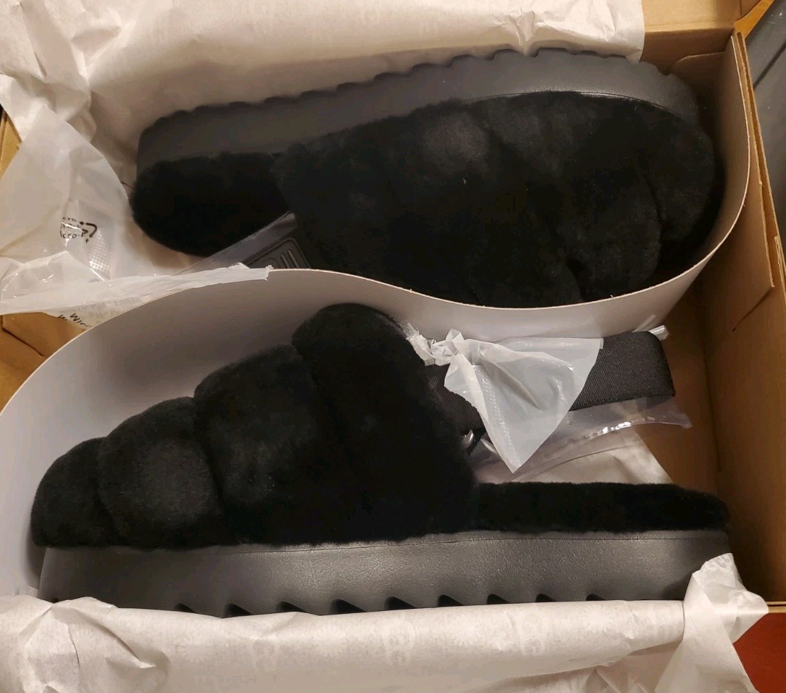 New UGG Super Fluff Slippers Women's Shoes Sandals Black Size 9
