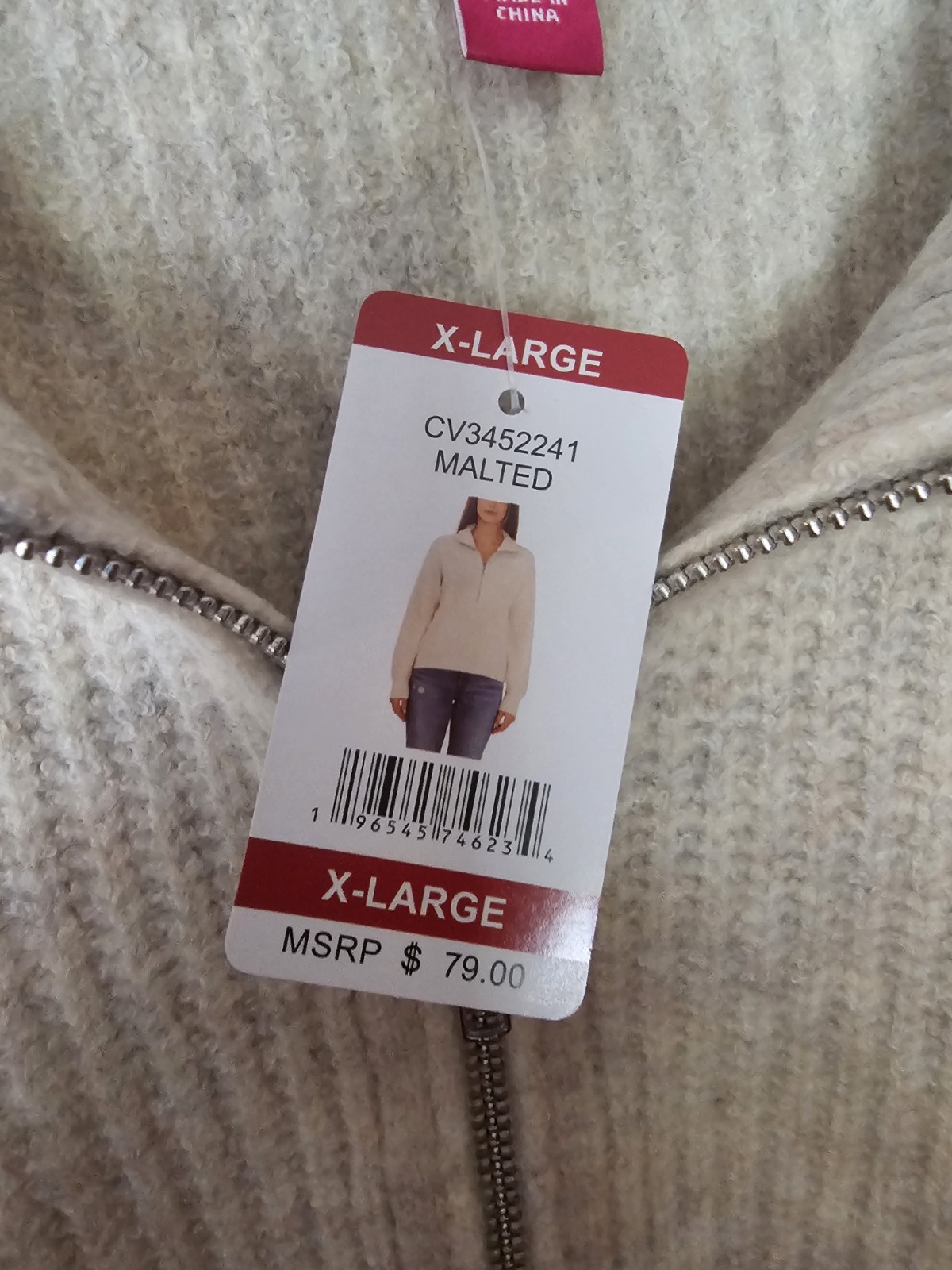 Vince Camuto Women's Half-Zip Pullover Ribbed Knit Fashion Sweater Malted XL NWT