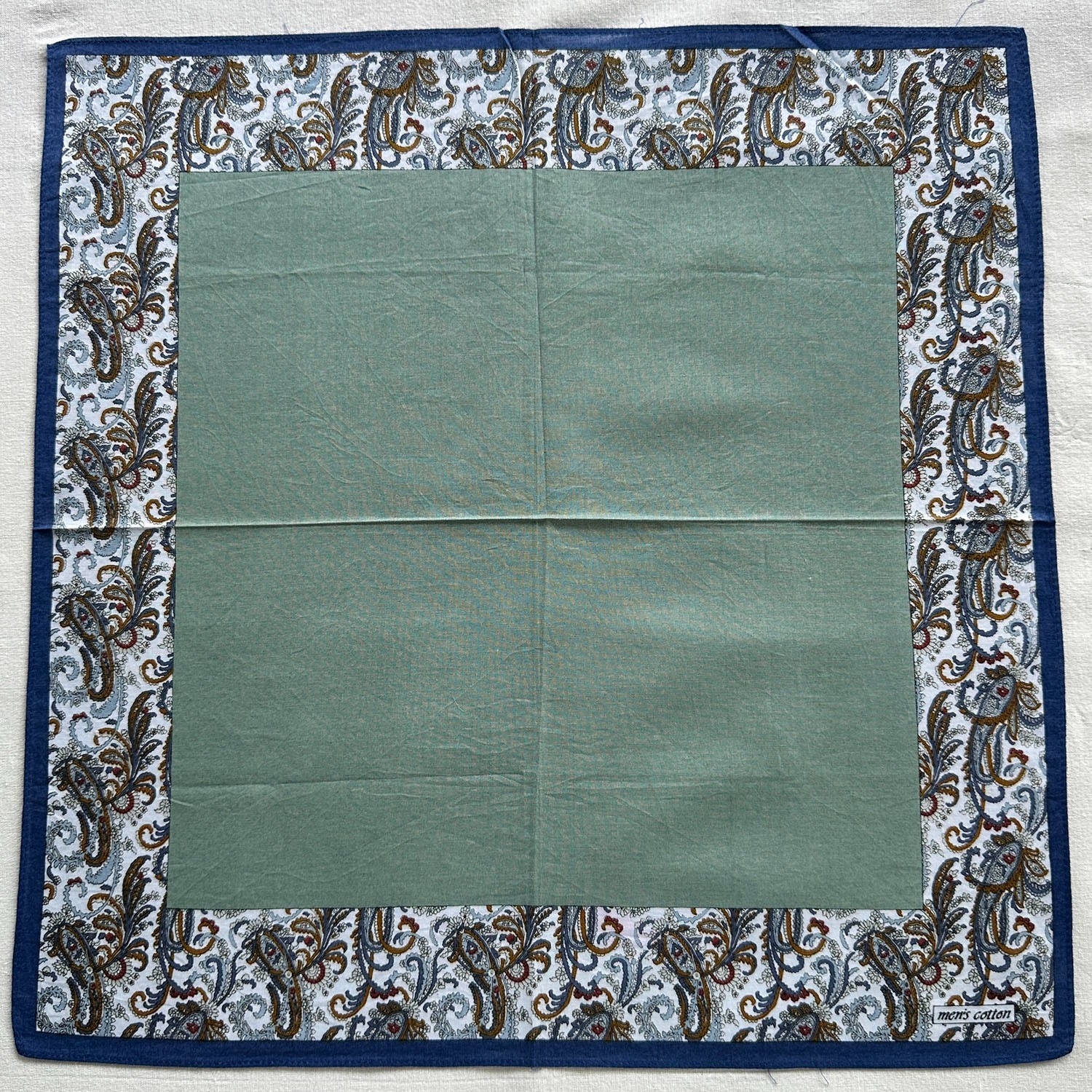 Vintage Handkerchief Plain Green Cotton Border Paisley Flourish Pocket Square 16
