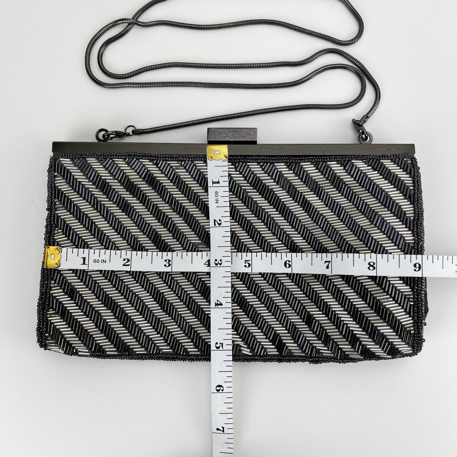 как выглядит Vintage Neiman Marcus Purse Clutch Evening Bag Black Silver Beaded фото