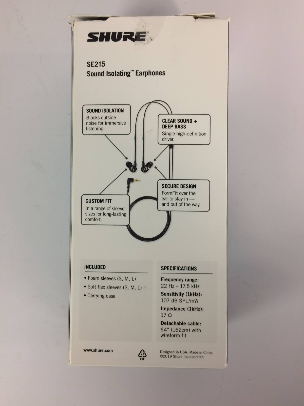 Open Box Shure SE215 Single Driver In-Ear Monitors, Black