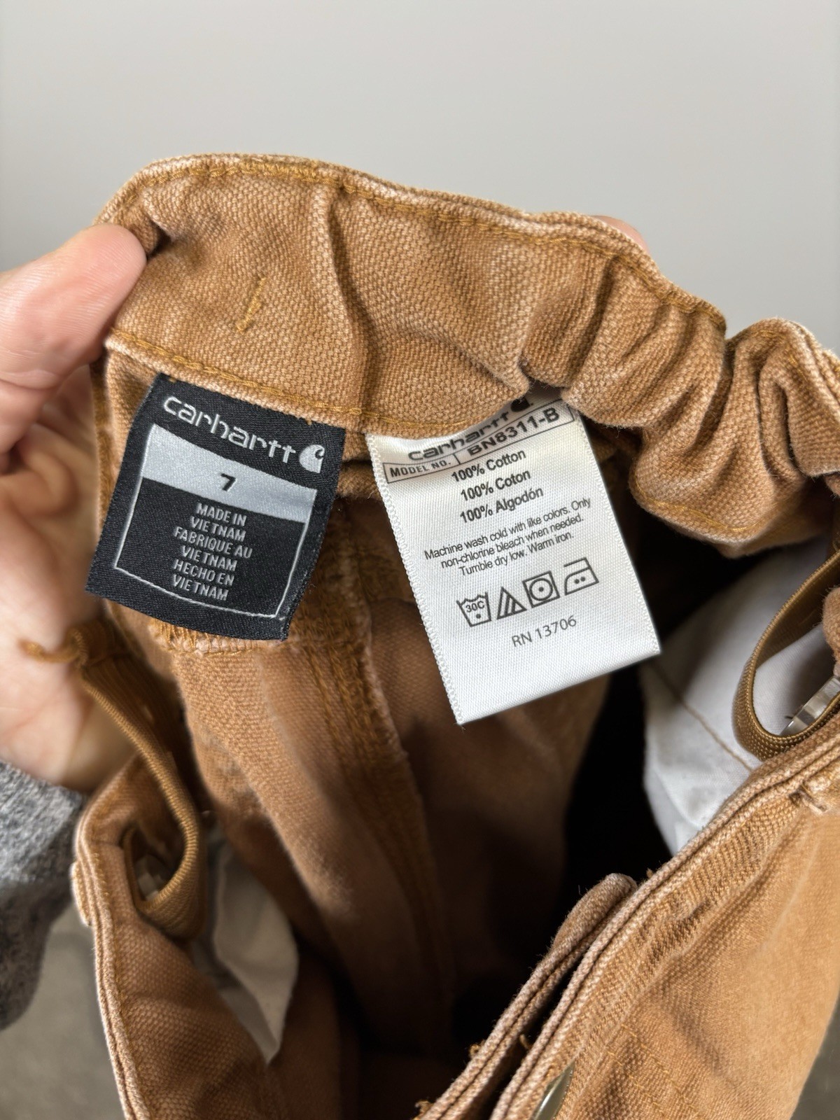 как выглядит Carhartt Boys Tan Carpenter Adjustable Waist Pants, Size 7 Slightly Worn Knees фото