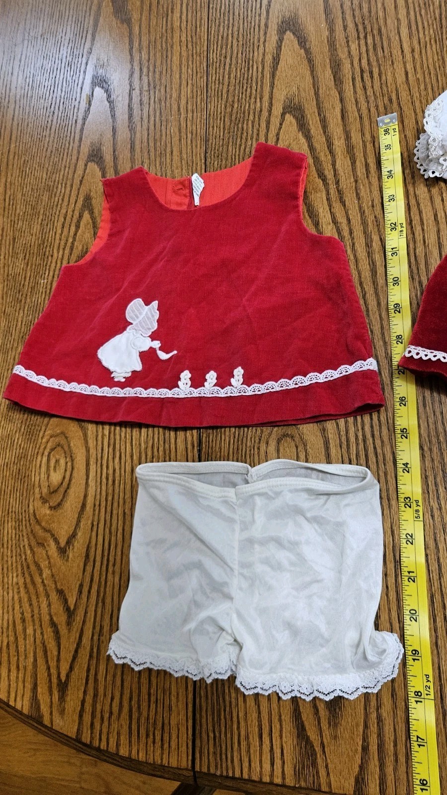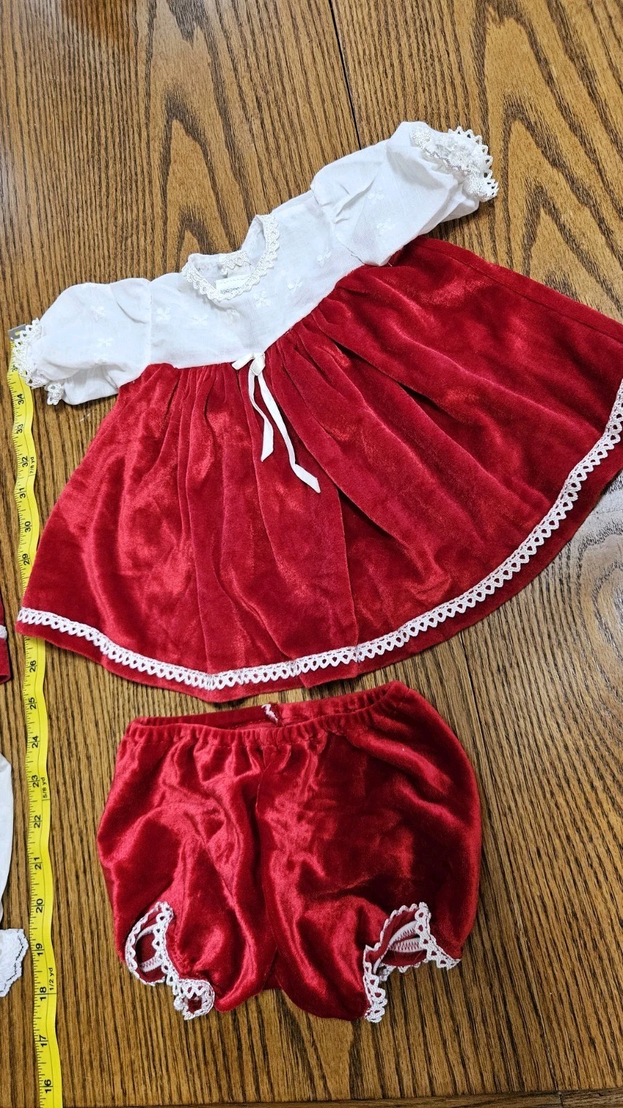 как выглядит Vintage 2 Red Velvet Baby Or Doll Dresses Outfits 0-6 Mos, 4 Piece Lot фото
