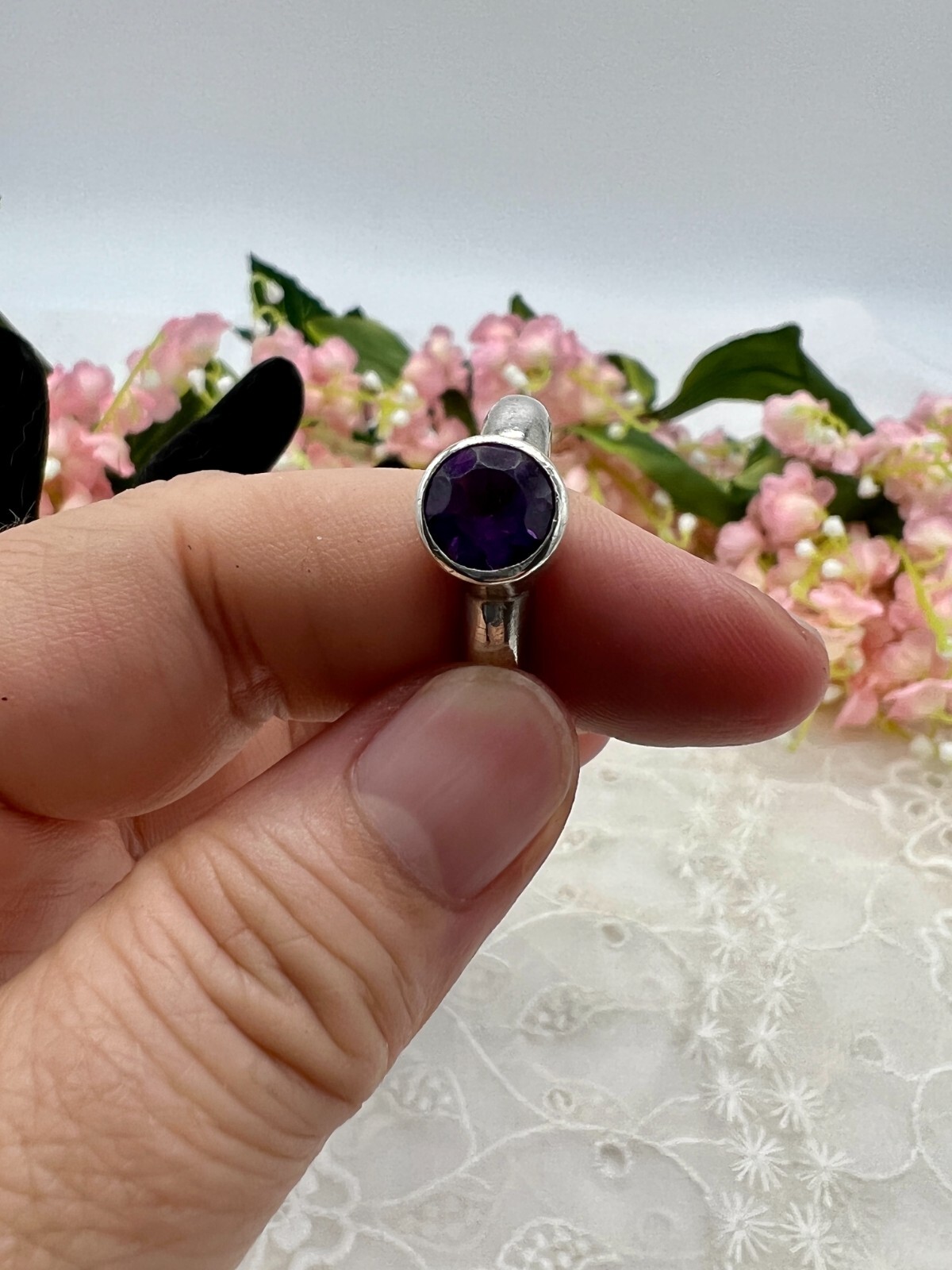 как выглядит Sterling Silver Amethyst Ring Artisan Made Size 7.25 фото