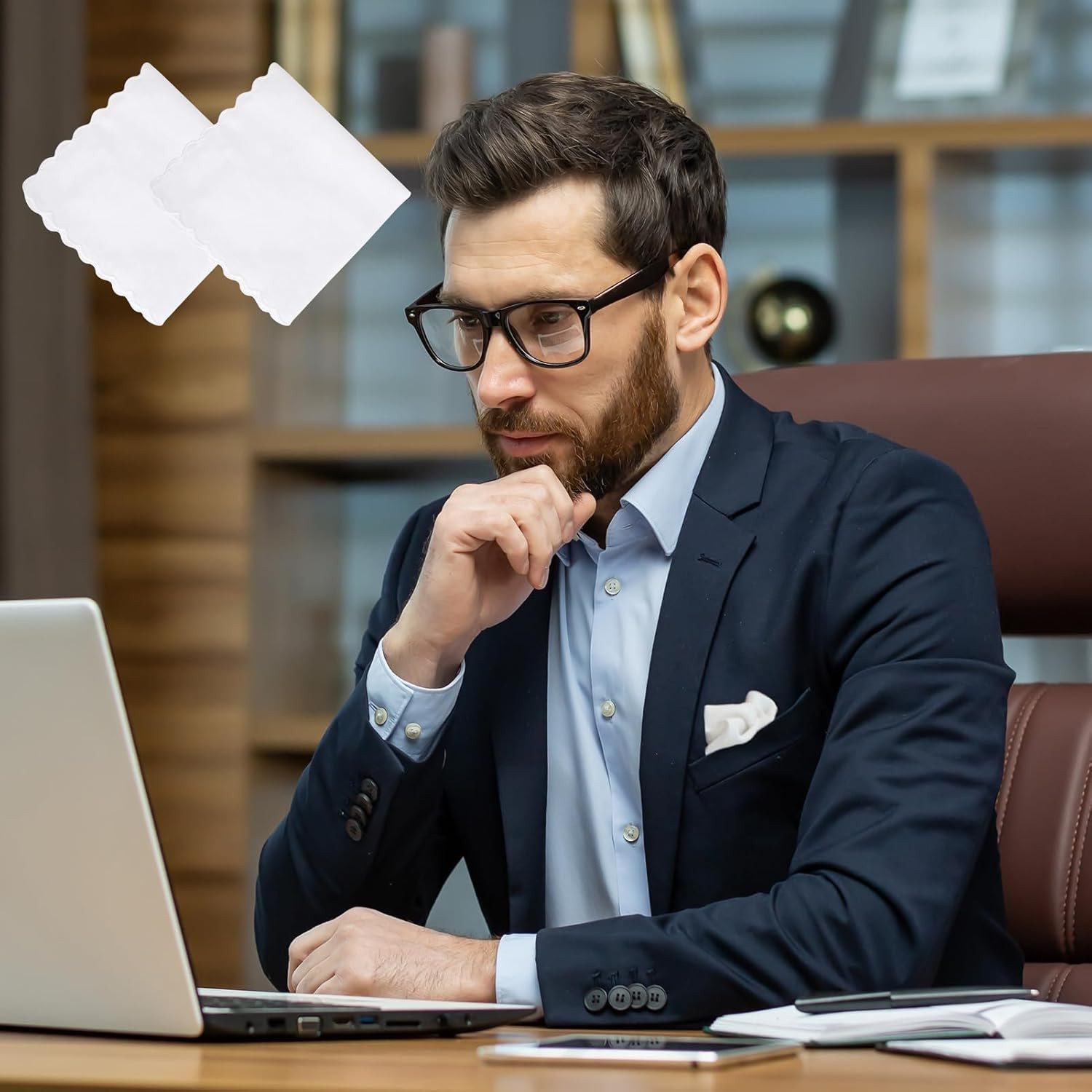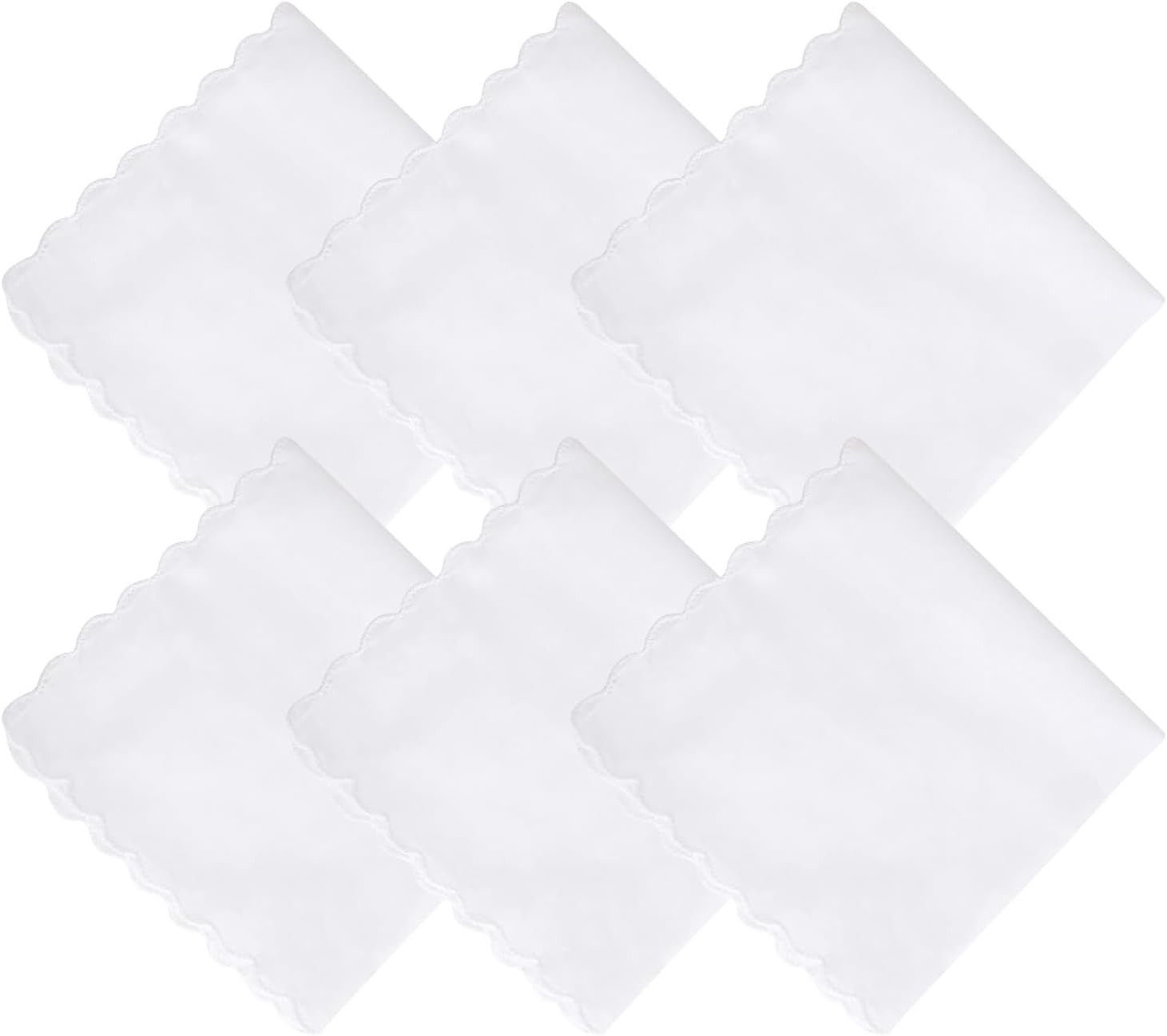 6 Pcs White Cotton Handkerchiefs, 11 White Pocket Square for Men Women with Cre