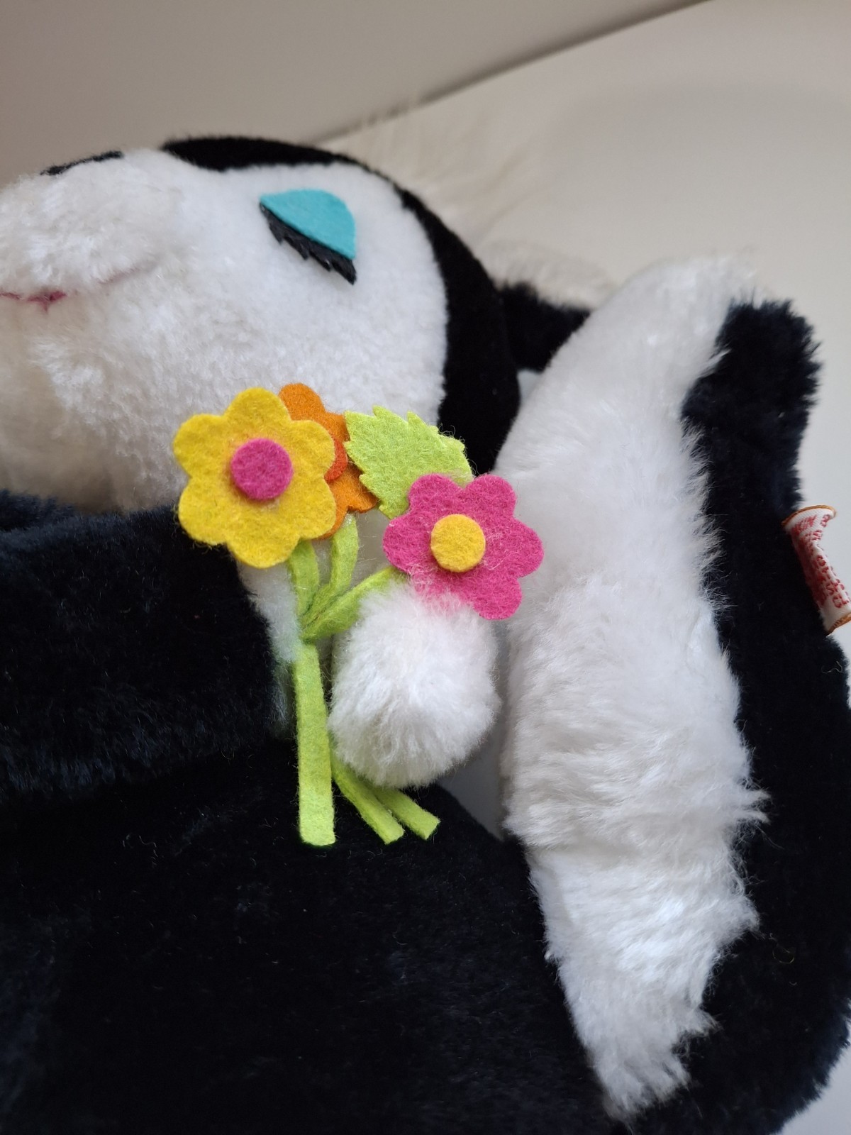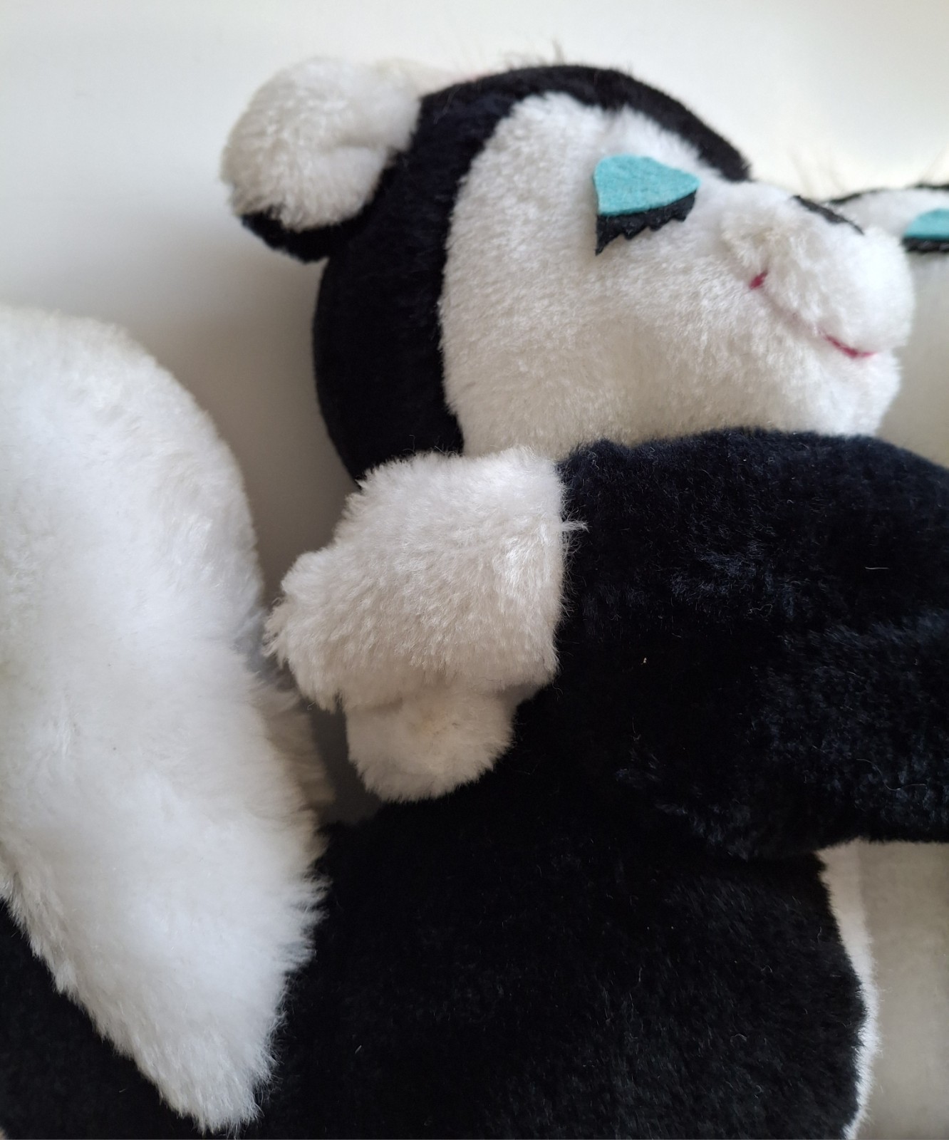 как выглядит R DAKIN Hugging Skunks Boy and Girl Stuffed Animals Plush 10in 1977 Felt Flowers фото