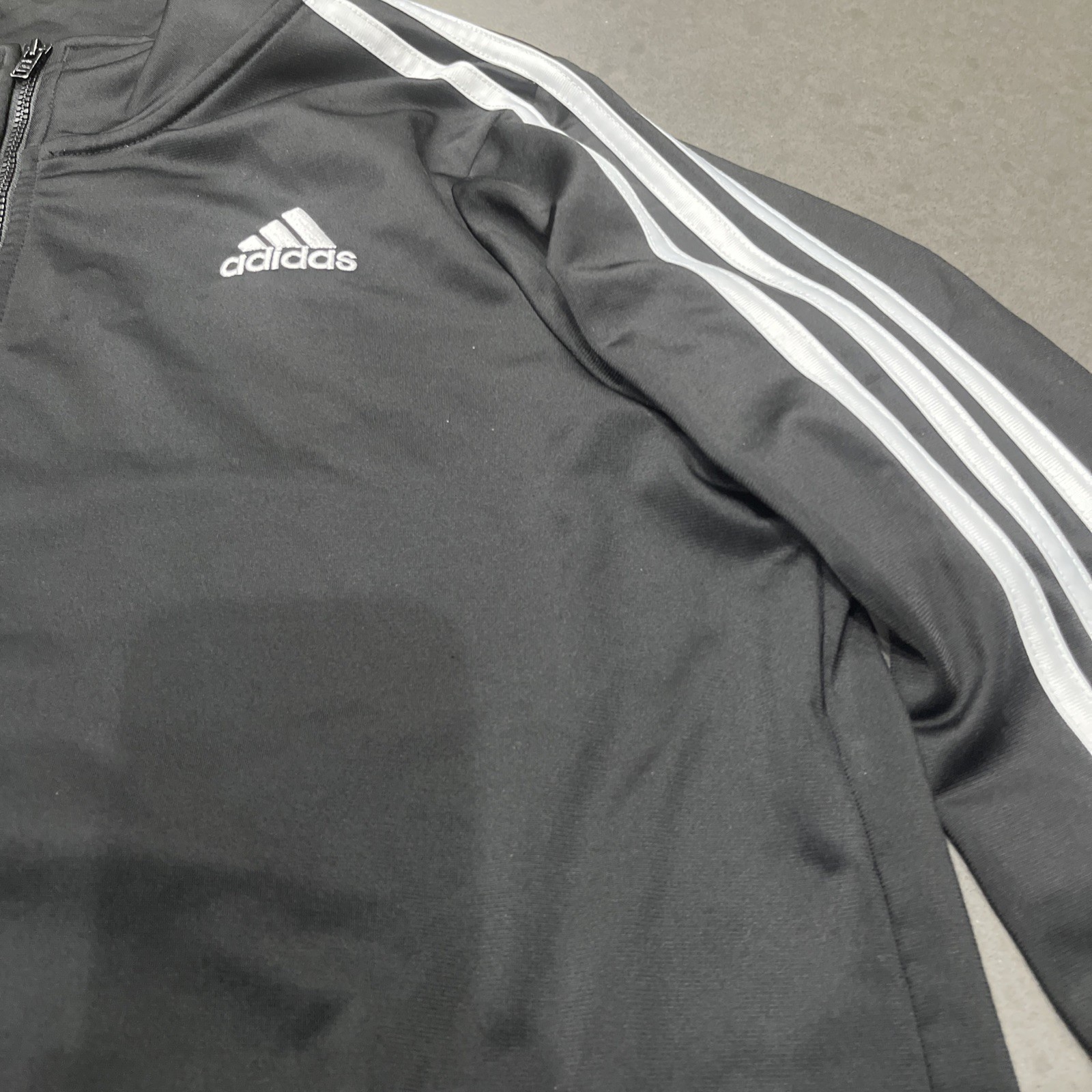 как выглядит Adidas Youth Size: XL 18-20 Full Zip Black White Stripes Track Jacket Pockets фото