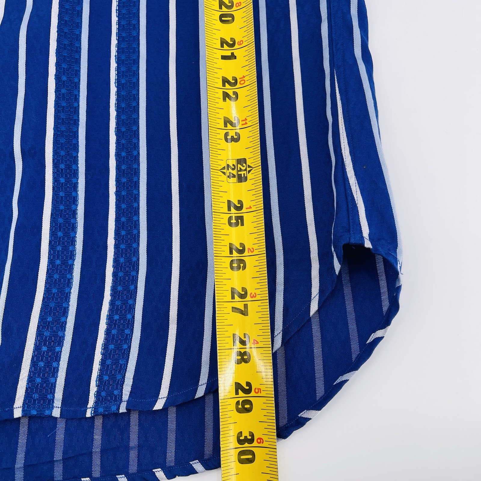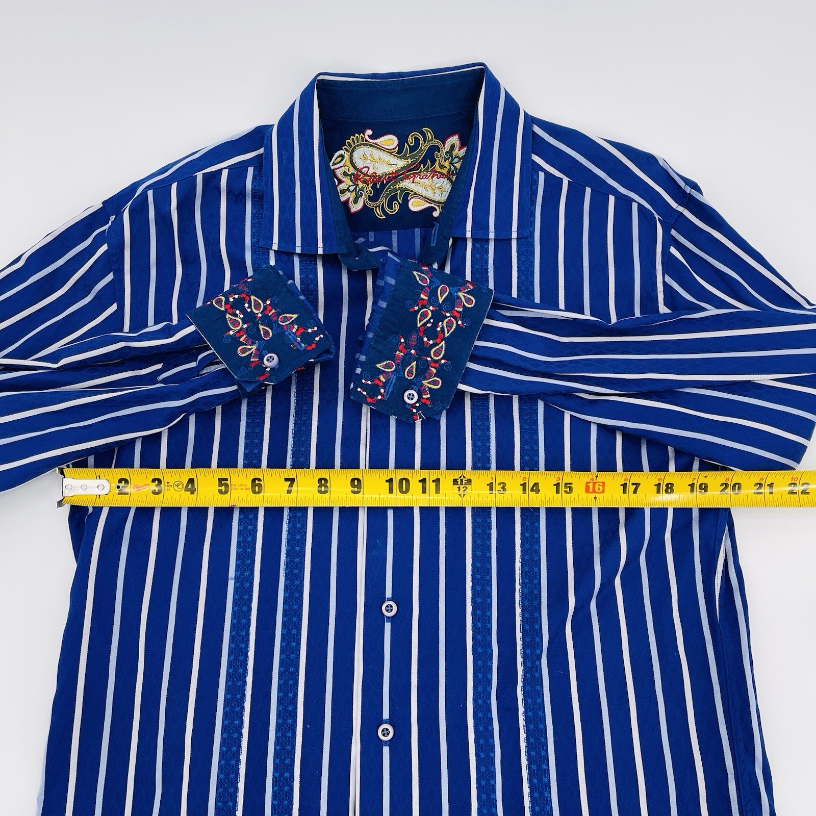 Robert Graham Button Up Dress Shirt Mens Large Striped Blue Flip Cuff Collar