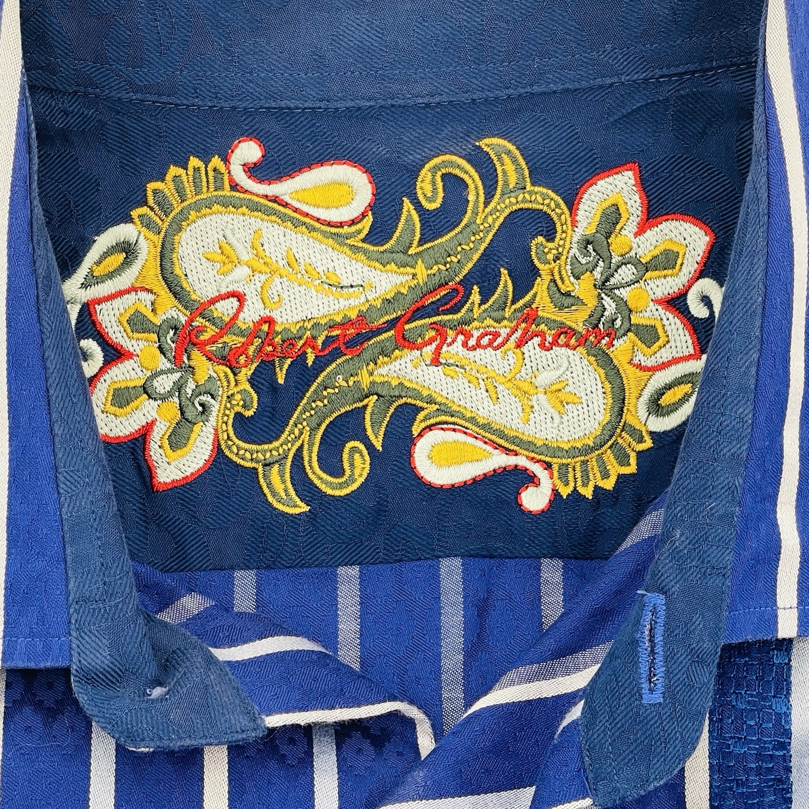 как выглядит Robert Graham Button Up Dress Shirt Mens Large Striped Blue Flip Cuff Collar фото