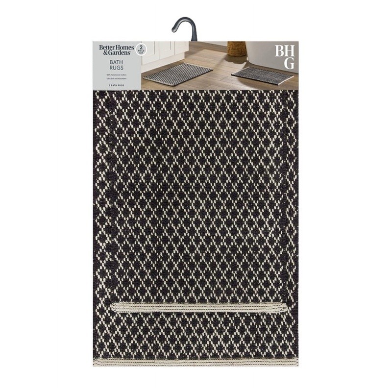 Handwoven Diamond Bath Rug Set 2pcs Anti Skid Soft Cotton Machine Washable New