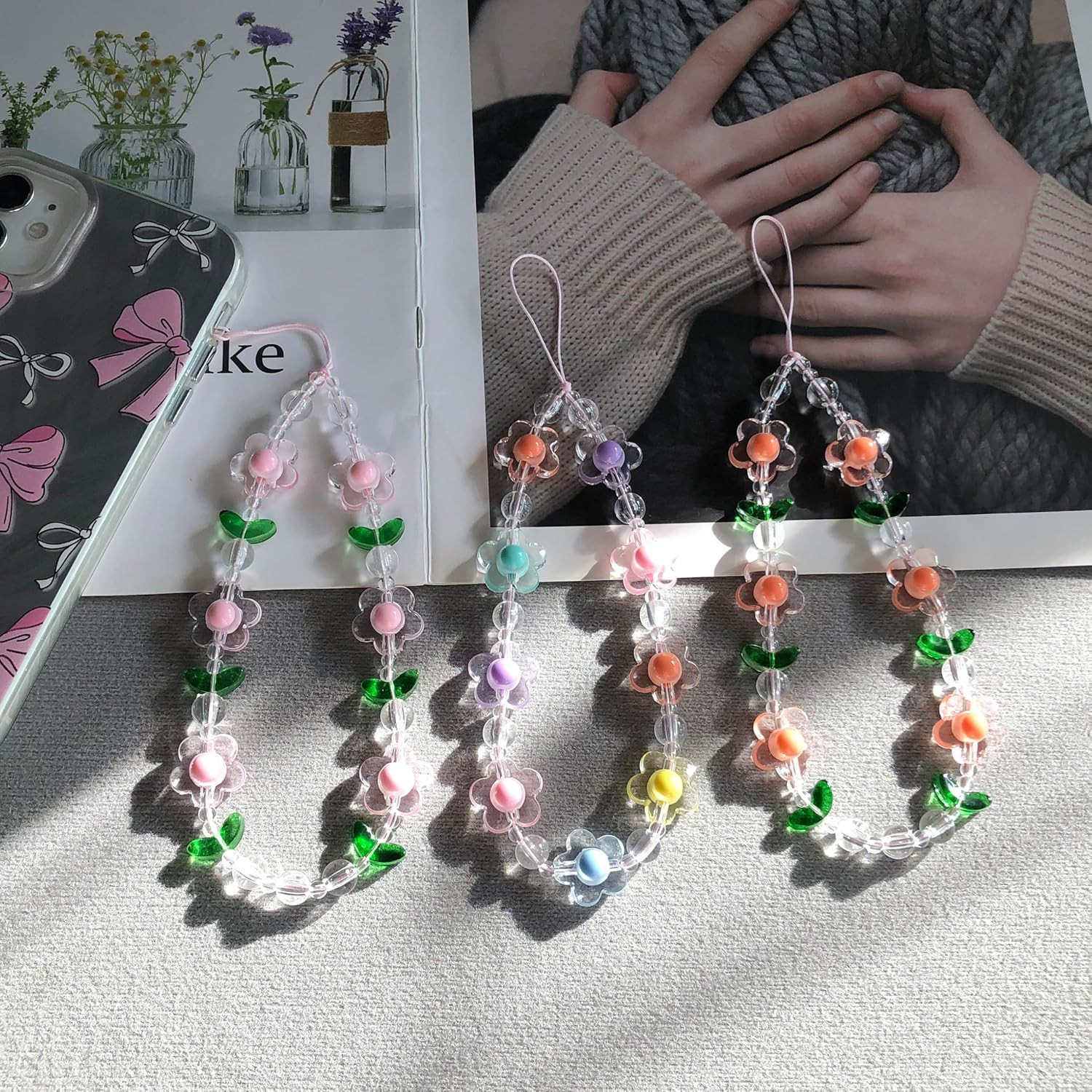 Aesthetic Phone Charm,Cute Digital Camera Wrist Strap,Beaded Flower Phone Wrist