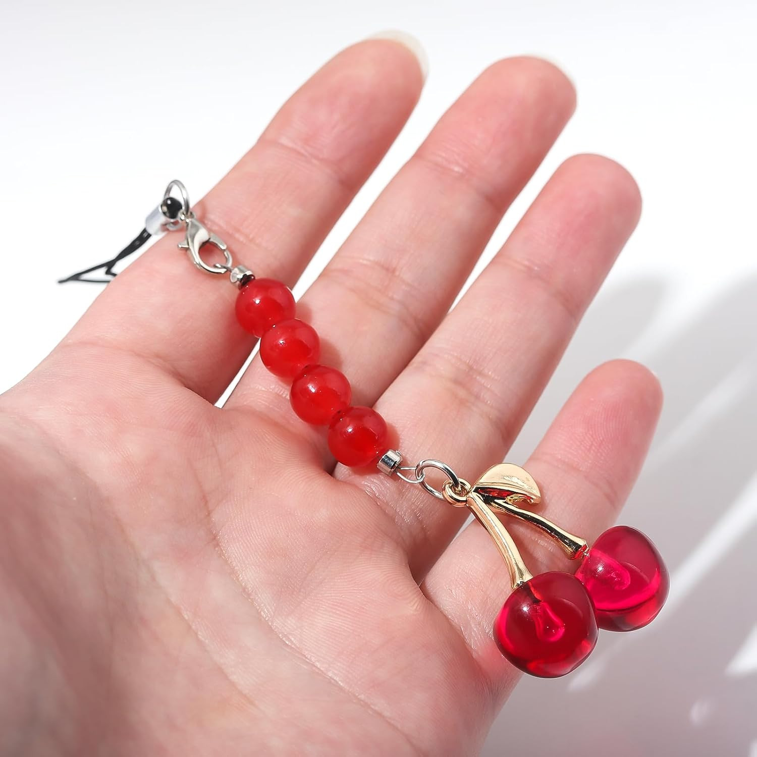 Cherry Beaded Phone Charms - Cell Phone Case Strap Lanyard with Lobster Clasp -