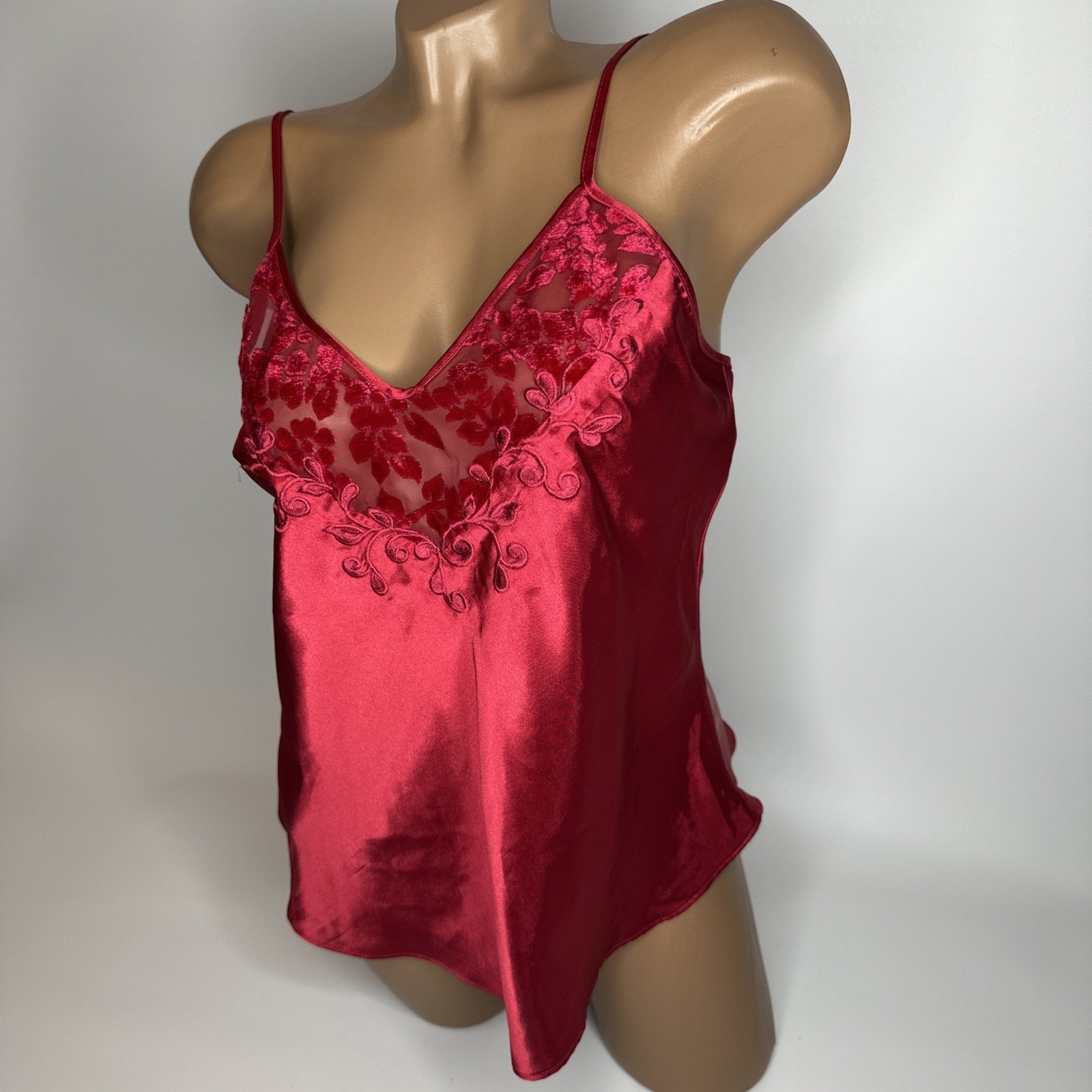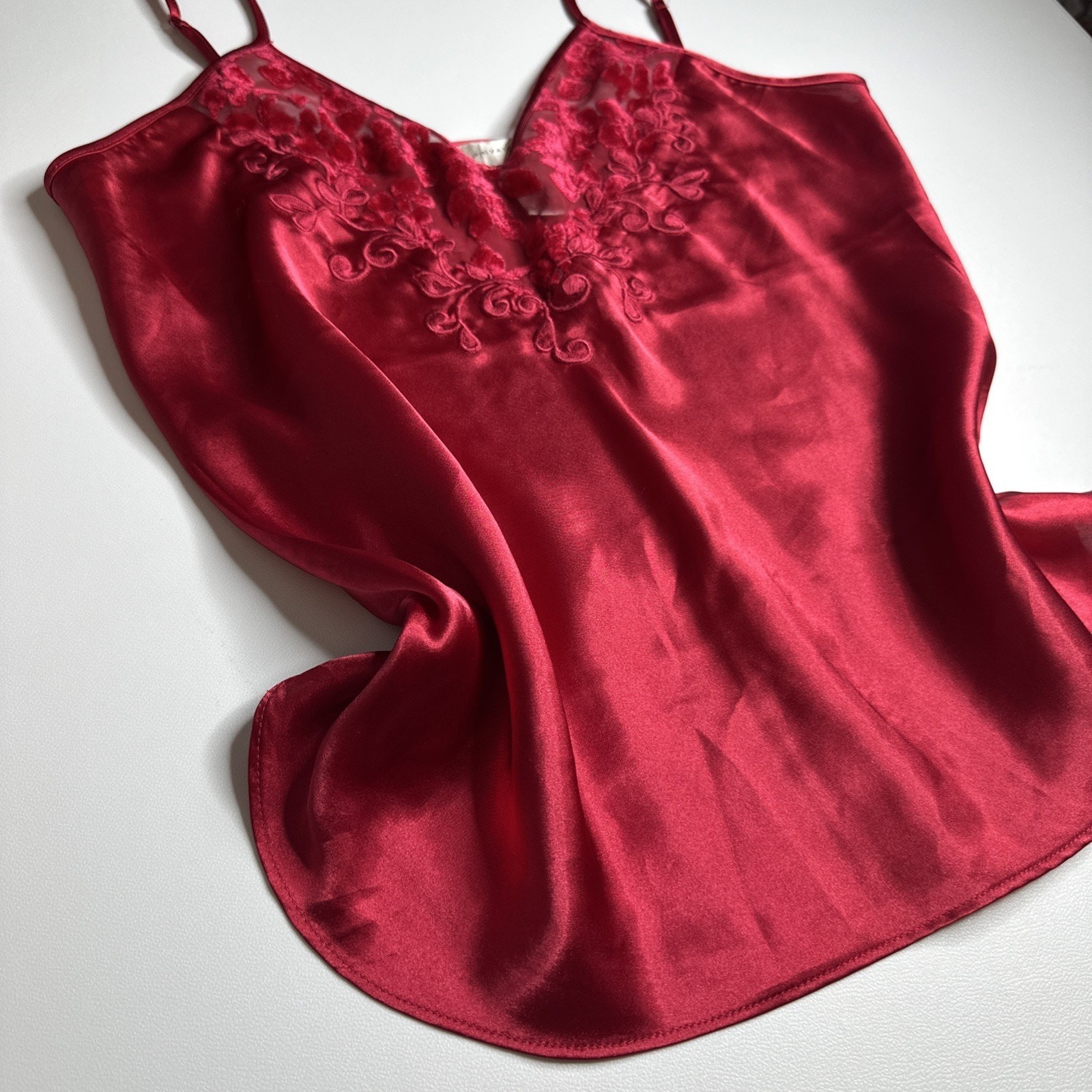 Vintage Natori Private Luxuries Red Satin Slip Dress Nightgown Top Small Nightie