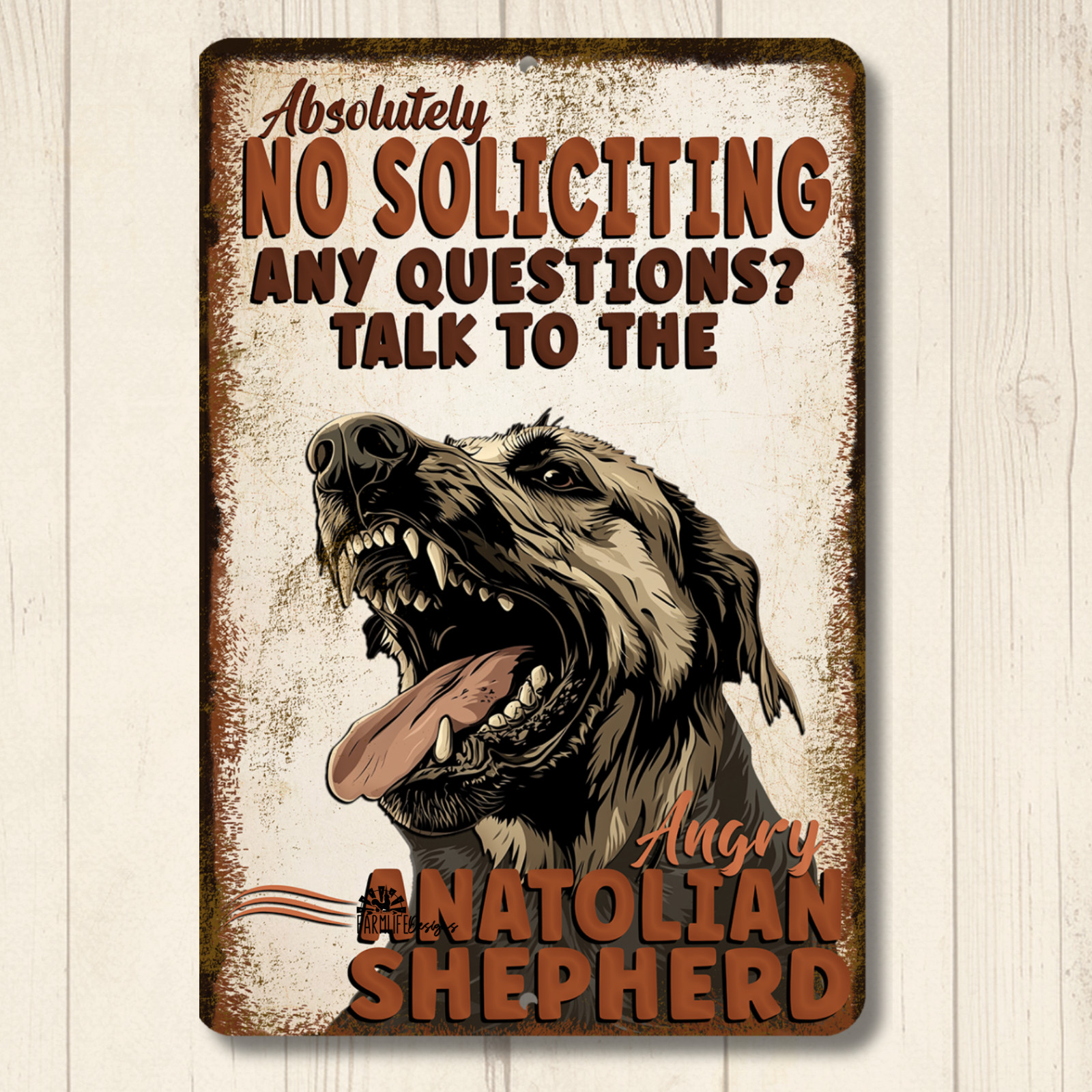 Anatolian Shepherd No Soliciting Sign Dog funny metal man cave tin outdoor