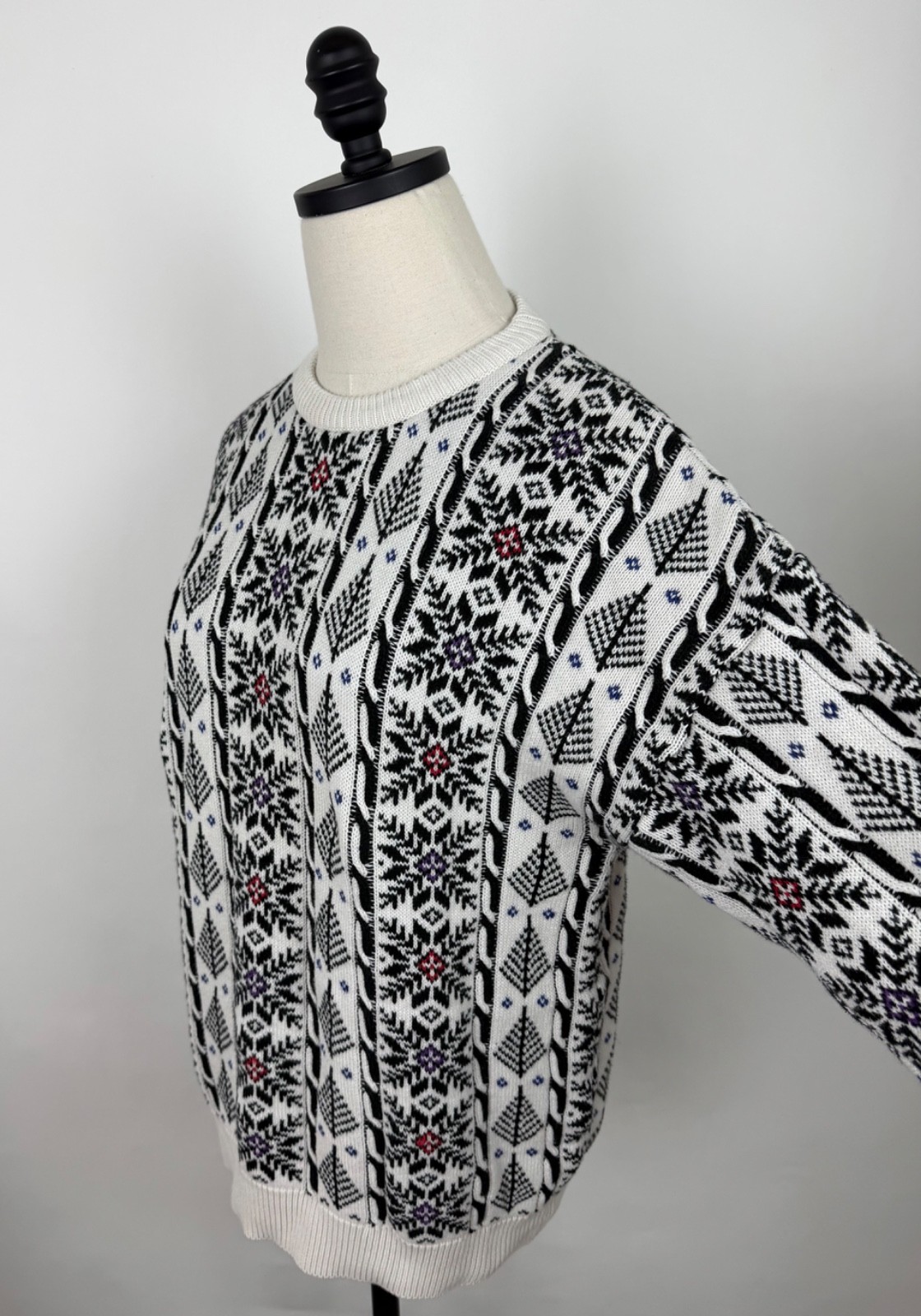 Vintage 90s Fair Isle Sweater Womens Medium Cable Knit Apres Ski Snowflake Retro