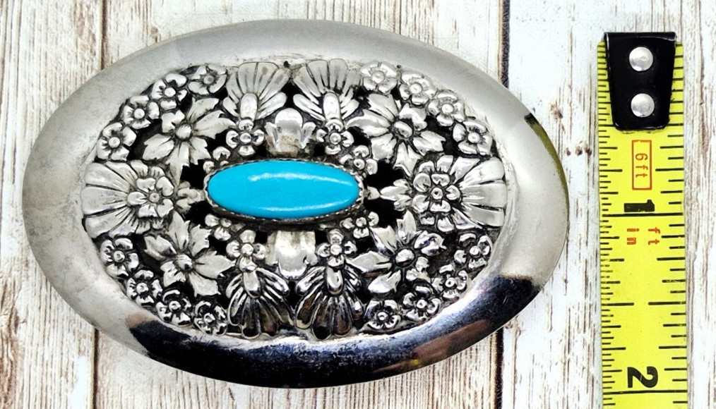 как выглядит Silvertone Metal Western Style Belt Buckle Faux Turquoise Fits 1 1/2" Belts фото