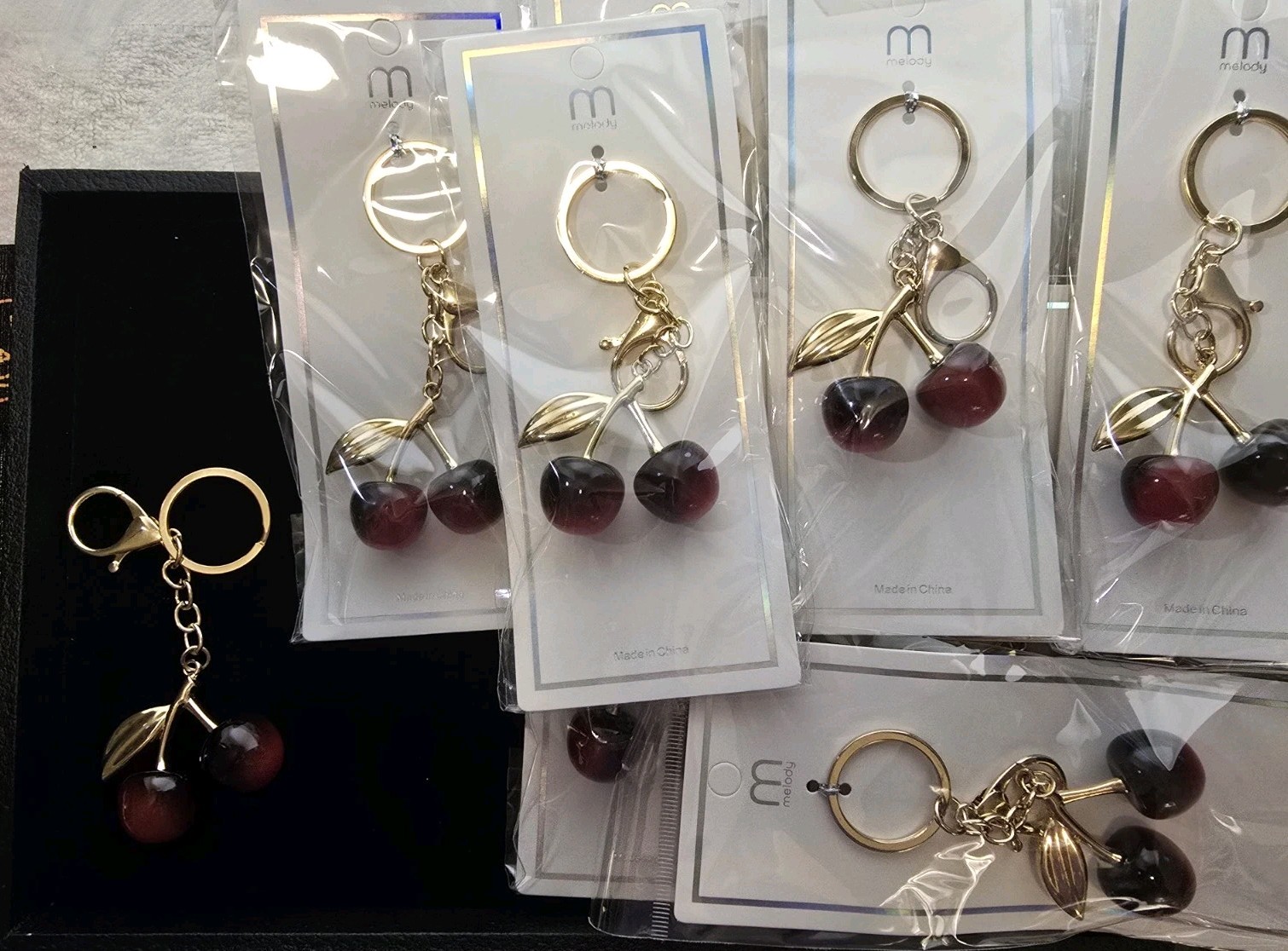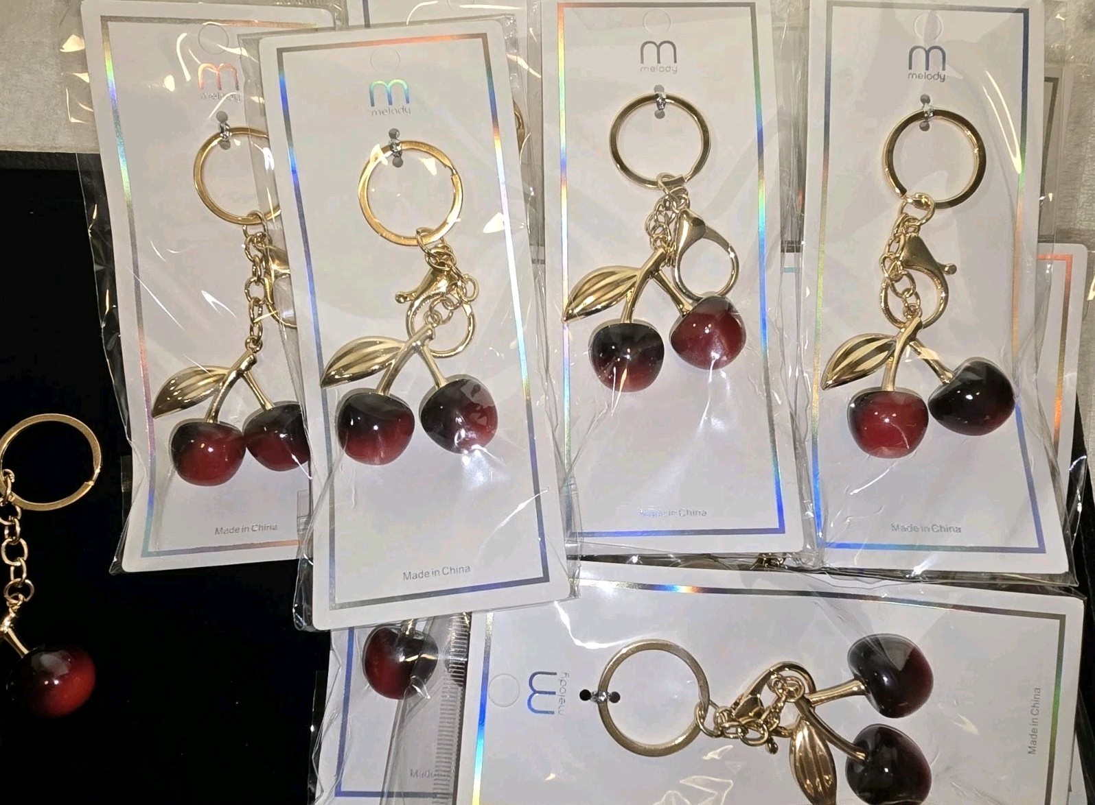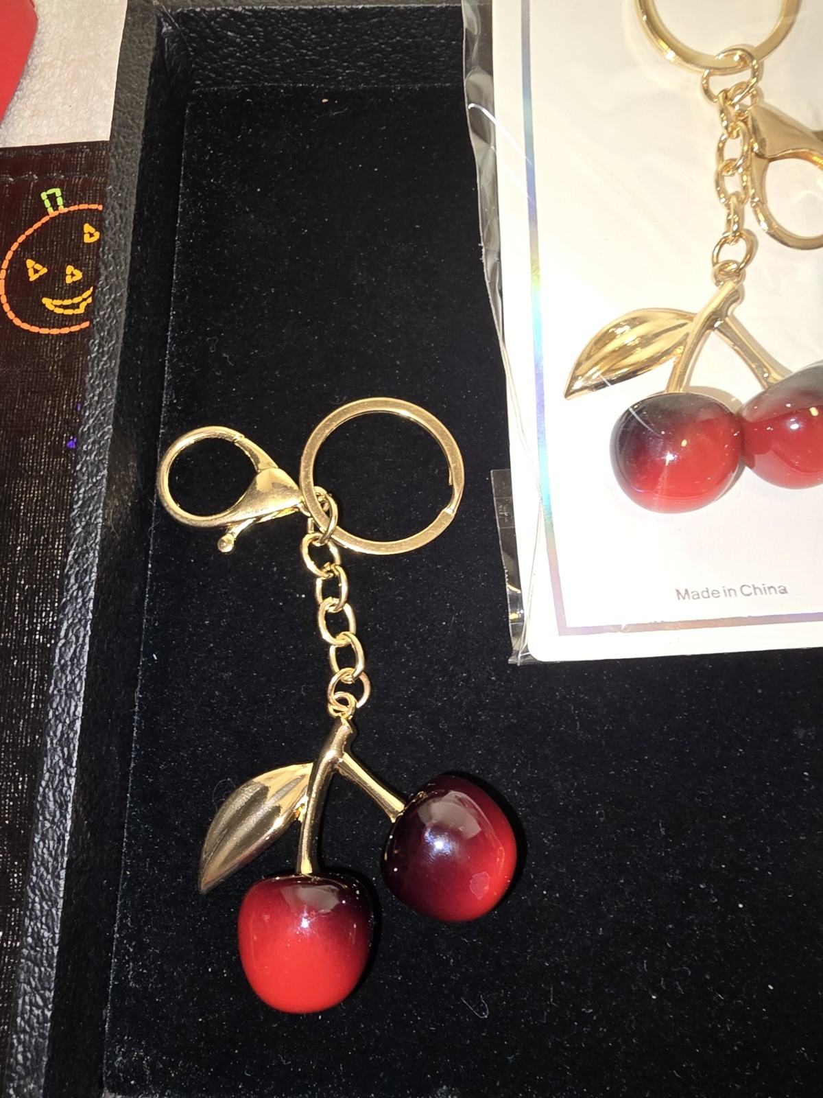 как выглядит Bag Charm/Key Chain Red Resin Cherries, Gold Tone Stainless Steel фото