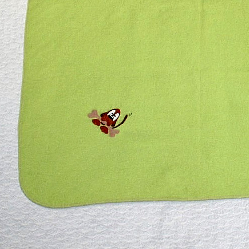 Pet Blanket Lime Green w/ Embroidered Dog and Bone Handmade 20 x 28 Gift Idea