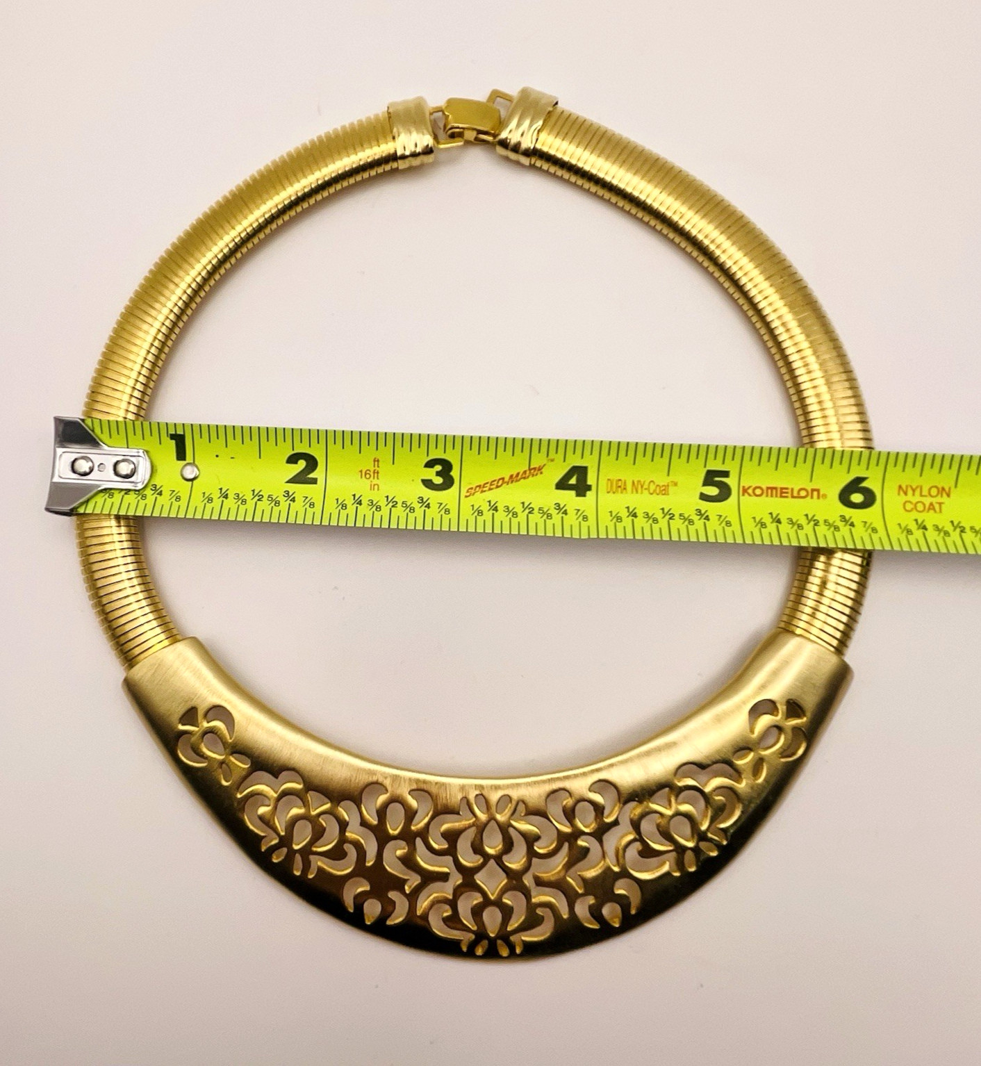 Vintage Choker Bib Collar Open Work Floral Gold Tone Necklace Statement