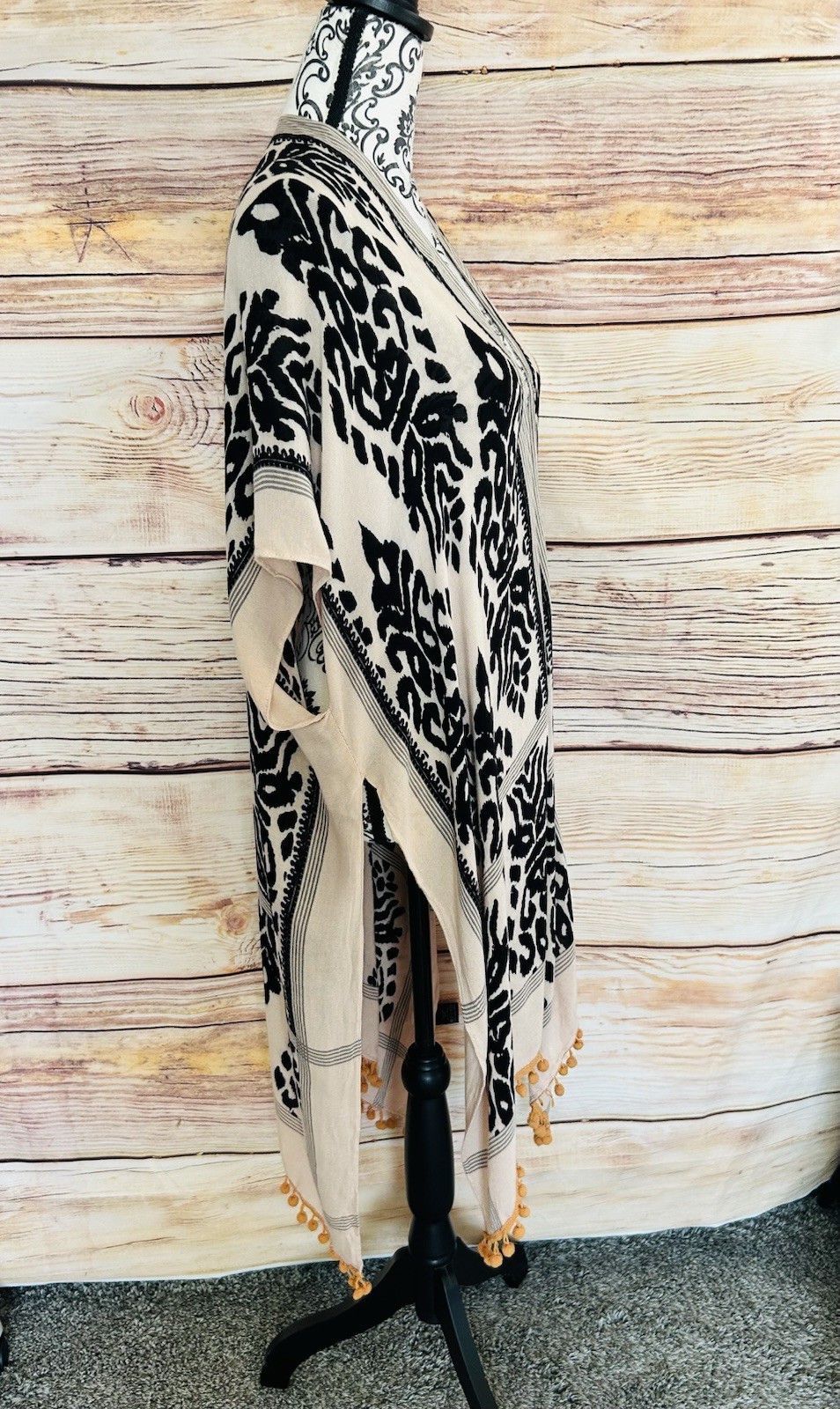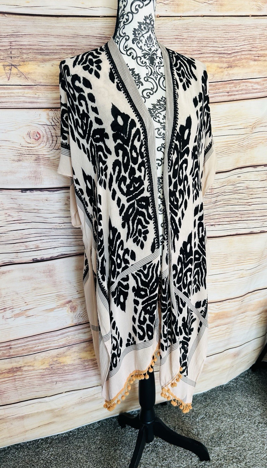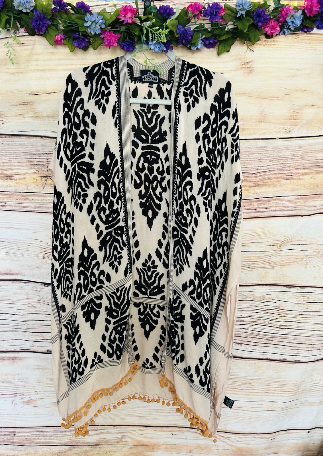 как выглядит Angie Bohemian Tassel Trim Printed Open Front Kimono Cover Up One Size фото
