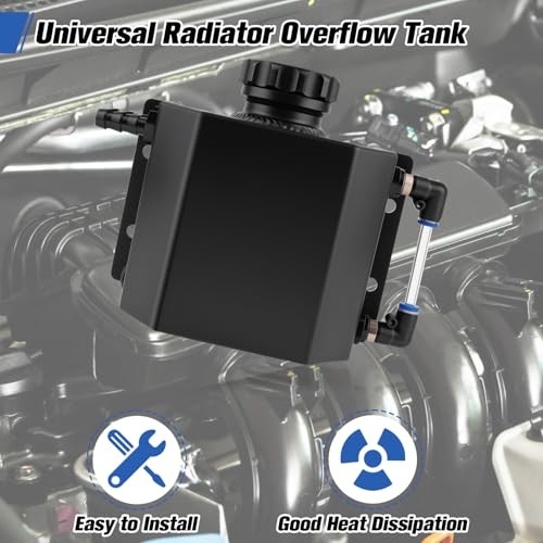 Coolant Overflow Tank, Aluminum Coolant Reservoir Tank, 1L Black Radiator