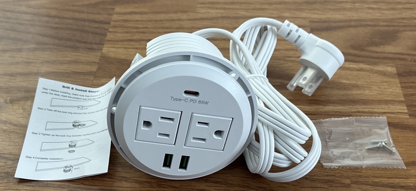 3 Recessed Desktop High-Speed Power Grommet Charging Station 2 Outlets 3 USB