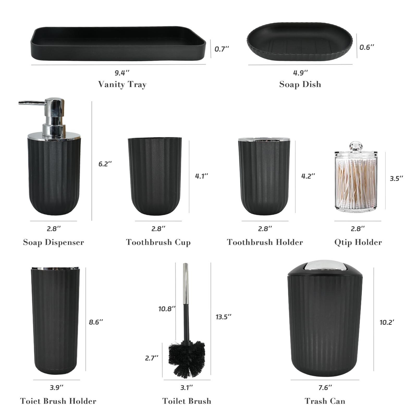 Black Bathroom Accessories Set, 9-Piece Bathroom Accessory Sets Complete with...