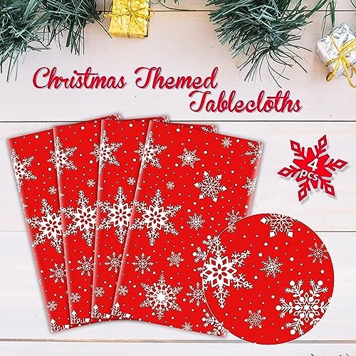 4 Pack Christmas Tablecloth Christmas Snowflake Tablecloth White Snowflake