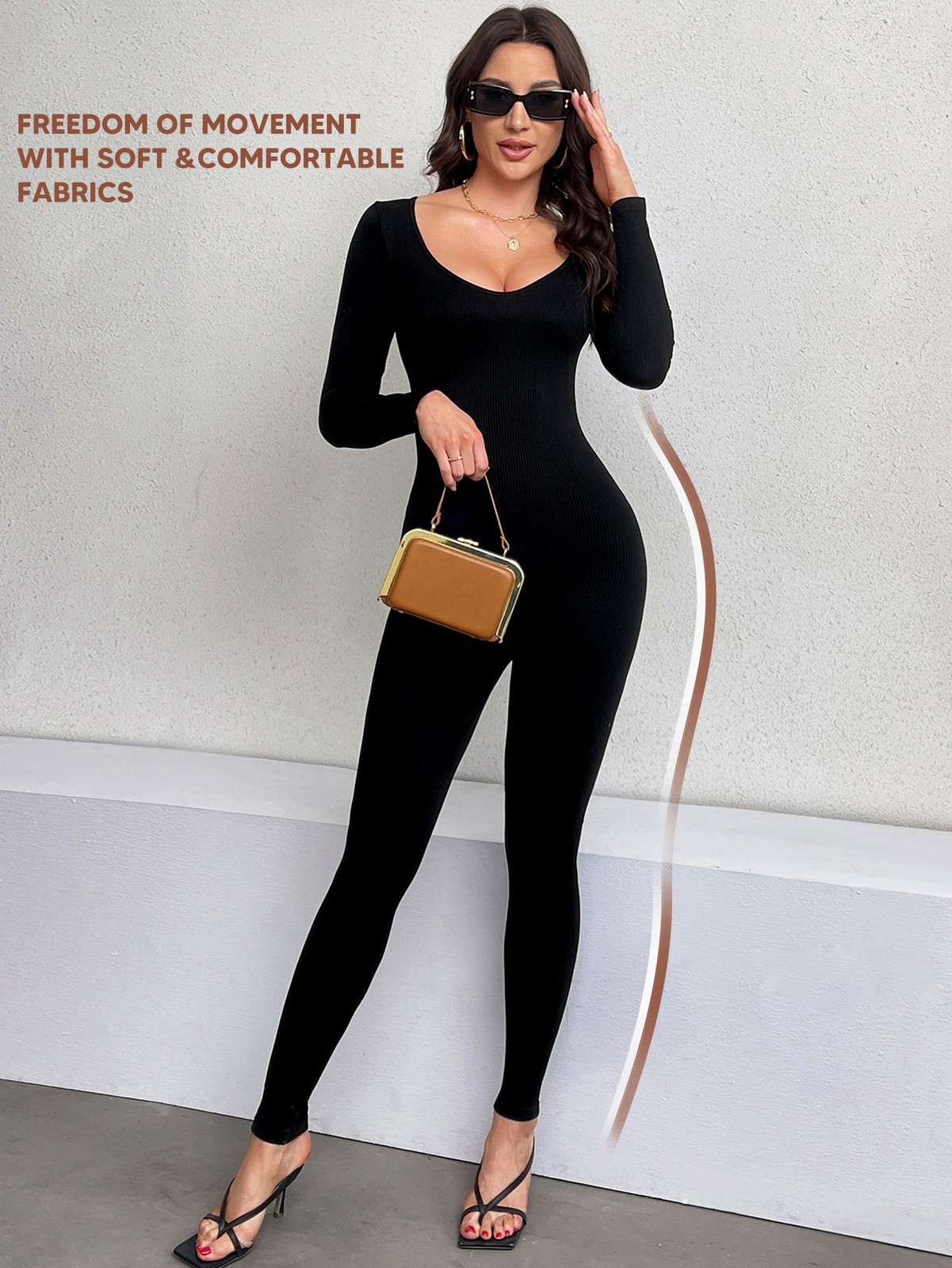как выглядит US Women Long Sleeve Yoga Jumpsuits Workout Ribbed Bodysuits Pants One Piece фото