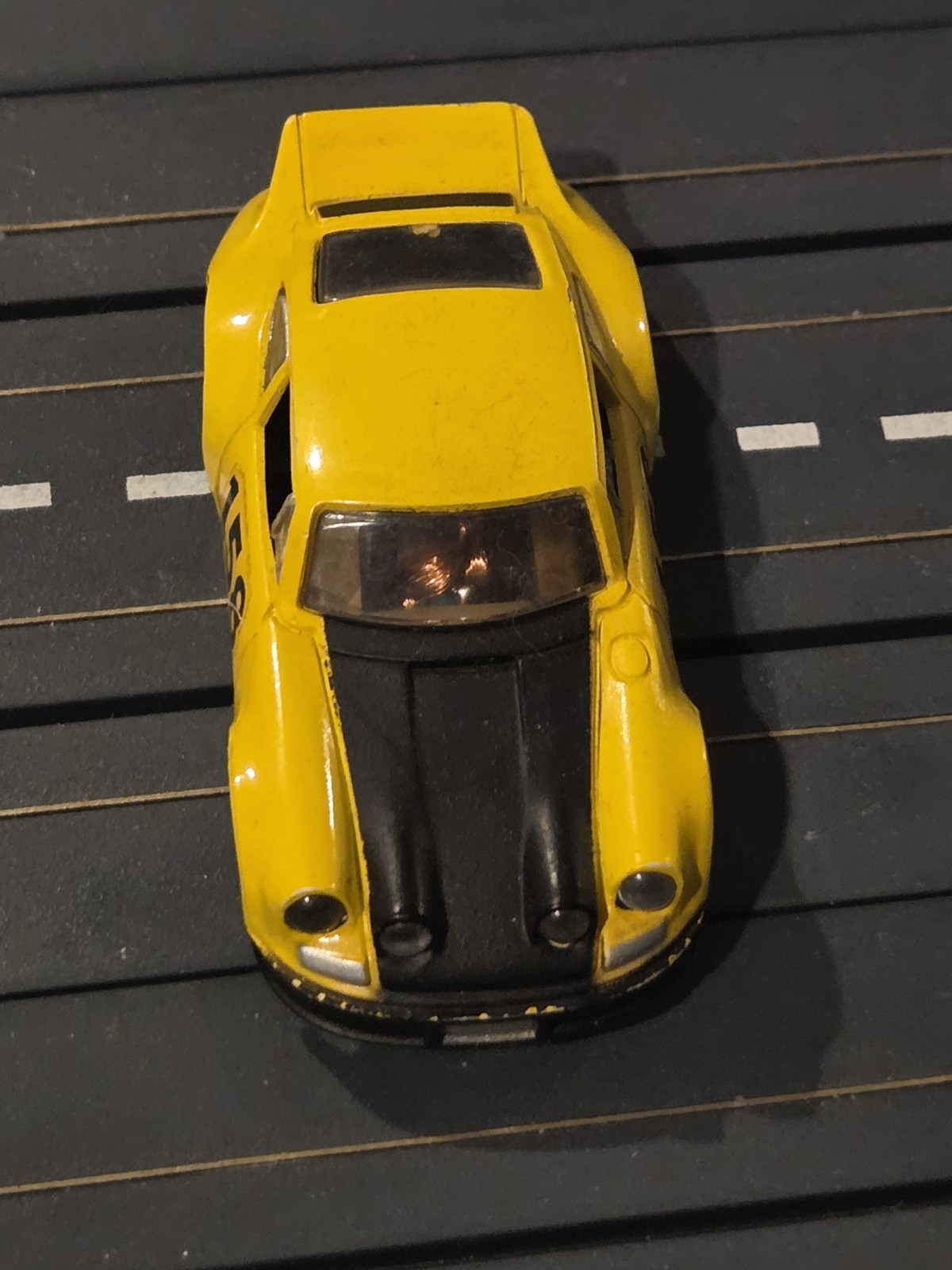 TYCO Porsche Carrera, Yellow / Black 158, Curve Hugger Chassis, H.O. Slot Car