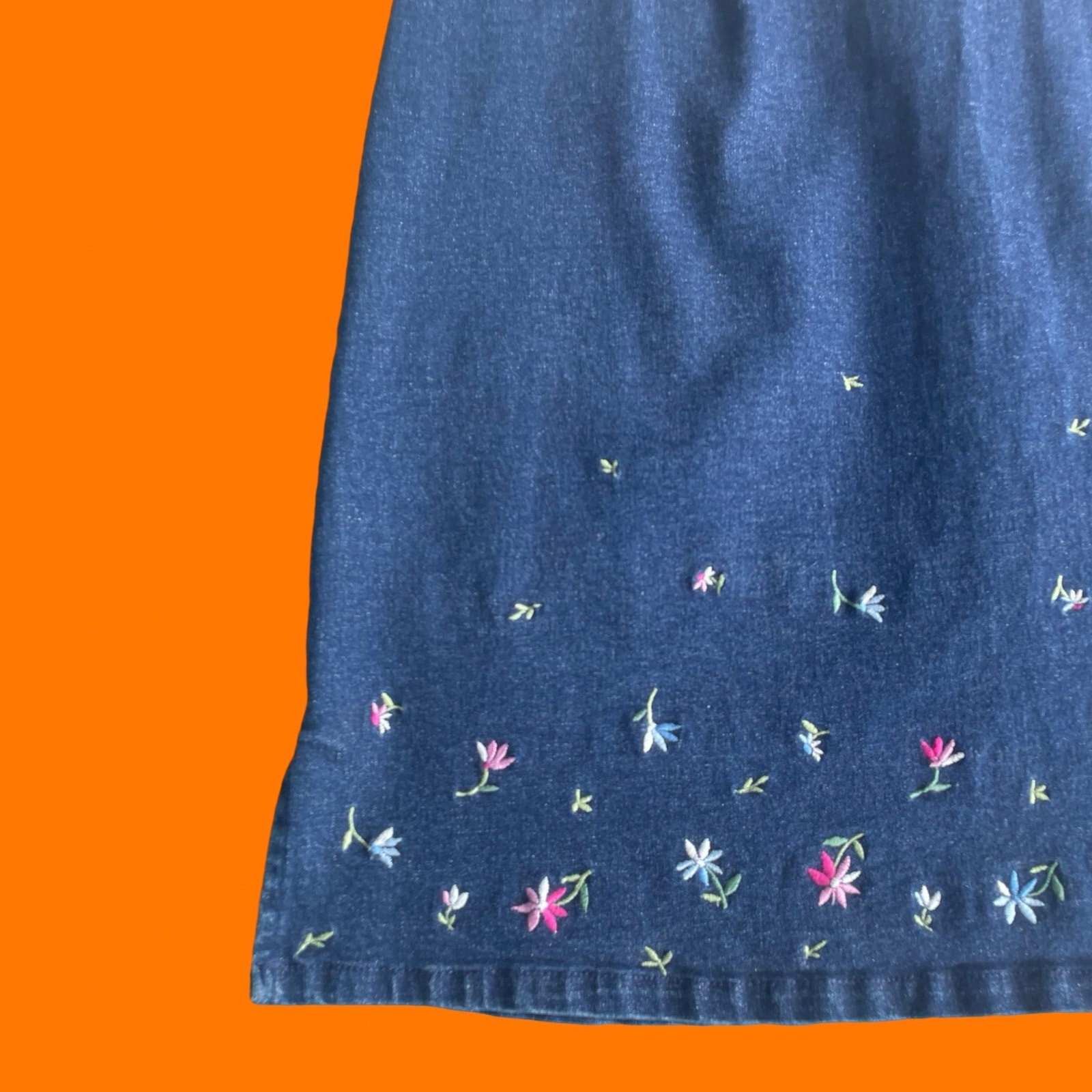 90's vintage denim floral embroidered high waisted mini skirt Size 9/10 Route 66