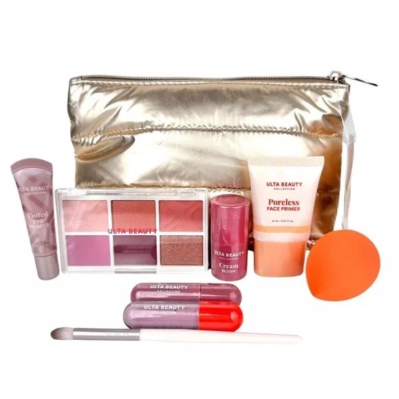 NEW ULTA BEAUTY COLLECTION 9-Piece Makeup Gift set W/Gold Zipper Beauty Bag