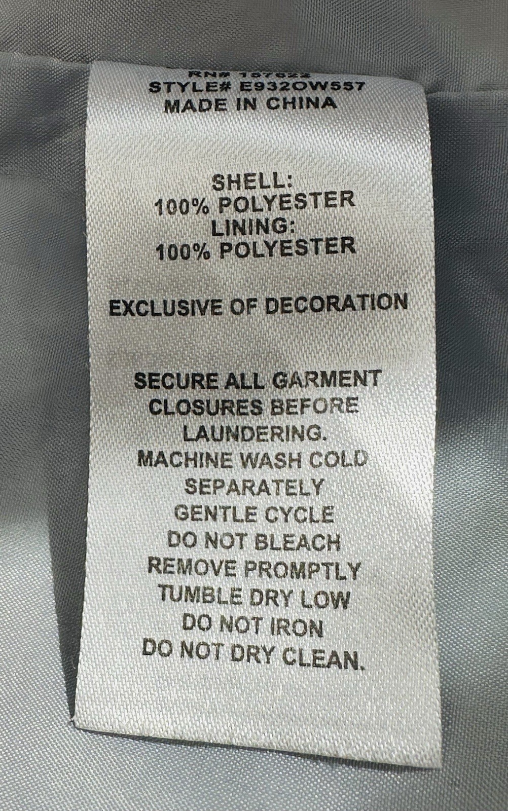 Lining Material: 100% Polyester