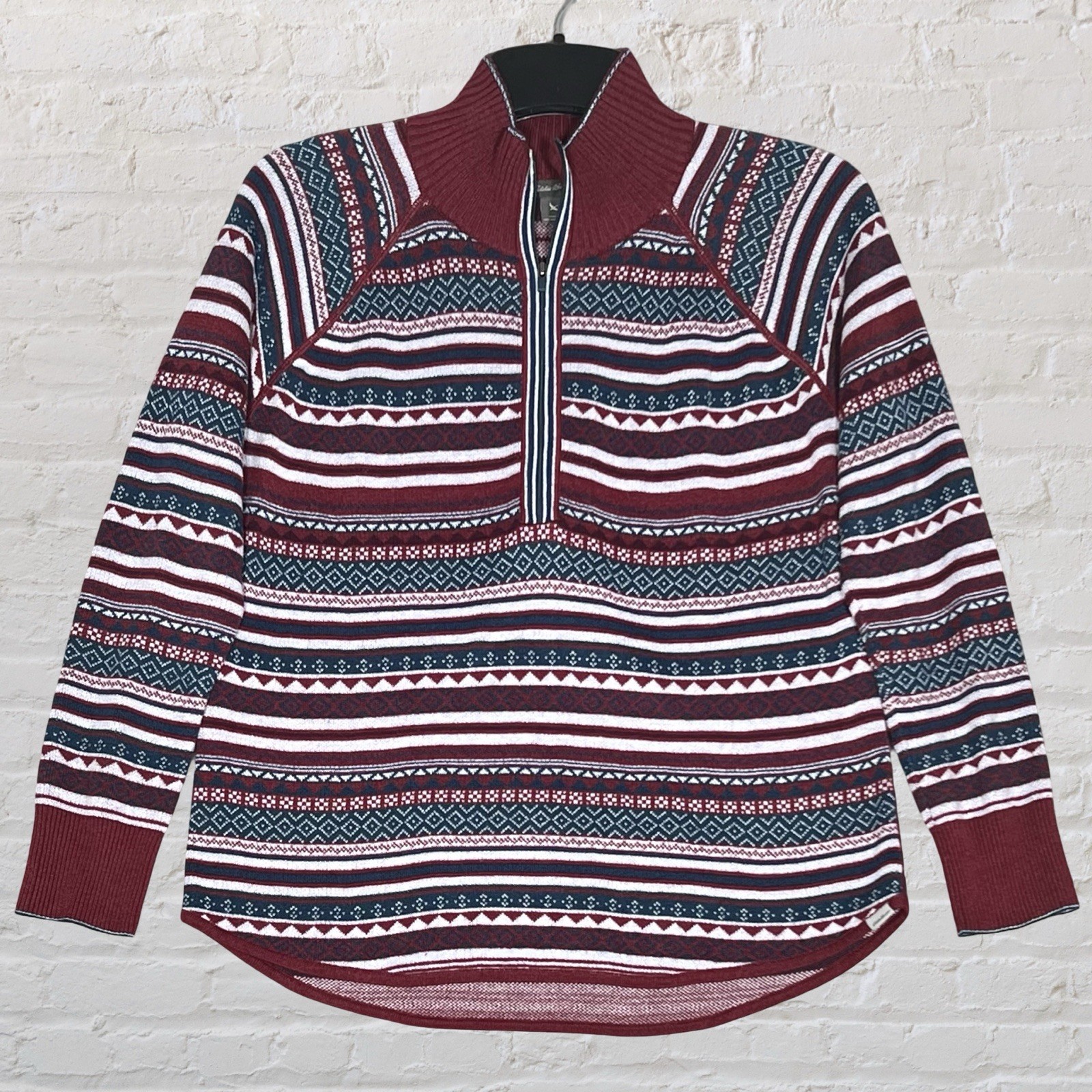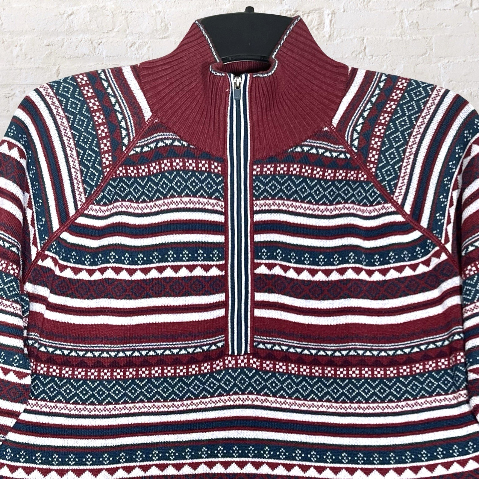 Eddie Bauer Engage Fair Isle Ruby 1/4 Zip Sweater Size L Mock Neck Winter Hiking