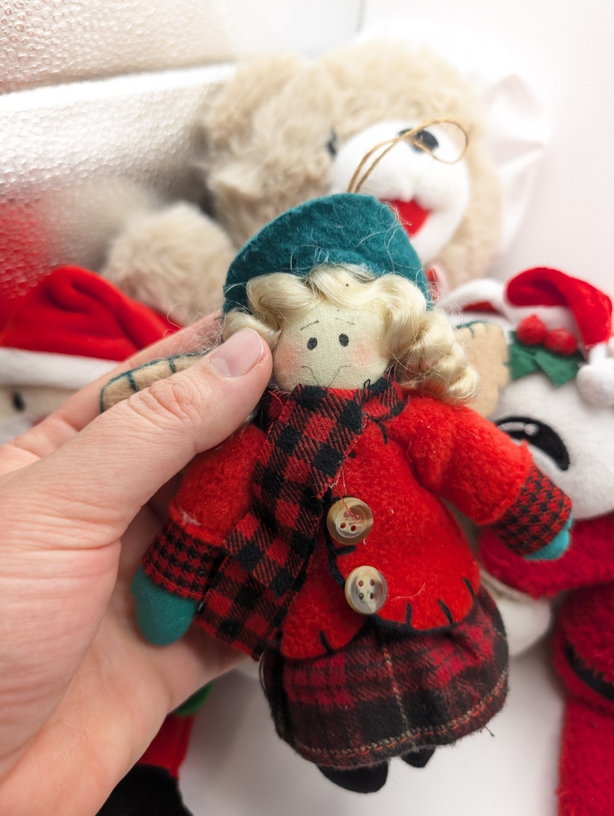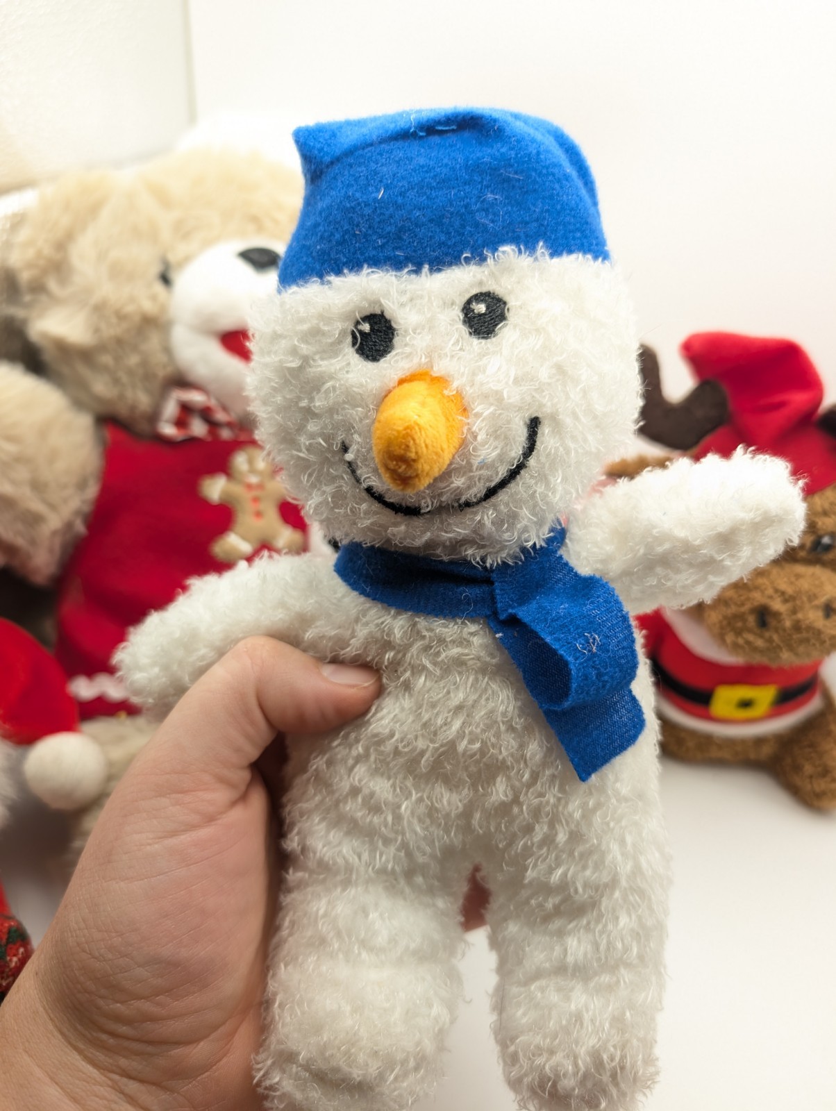 christmas plush lot of 10 including reindeer, snowman, cat, bear, mouse, santa
