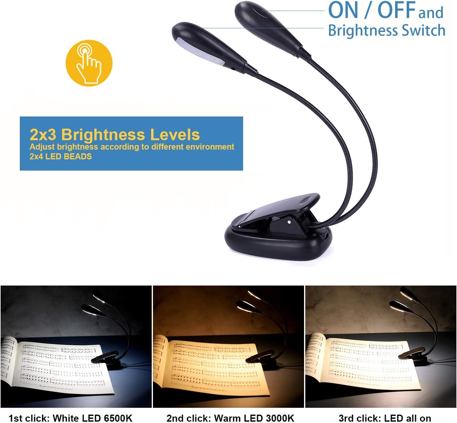 Rechargeable Music Stand Light, Clip on Reading 8 LED Book Lamp, White